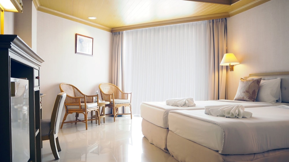 City Beach Resort ligger i hjertet av Hua Hin og med et opphold her vil du være 10 minutters gange unna Hua Hin strand og Hua Hin togstasjon. Dette hotellet med golfmuligheter ligger 0,4 mi (0,6 km) unna Hua Hin nattlig market og 1,4 mi (2,2 km) unna Hua Hin Market Village. Føl deg som hjemme i et av de 162 aircondition-avkjølte gjesterommene, som også har kjøleskap og minibar. Du kan holde deg oppdatert med wi-fi (inkludert) på rommet, og underholdningen er sikret med kabel-TV. Rommene har privat bad med kombinert dusj/badekar, toalettartikler (inkludert) og hårføner (på forespørsel). Rommet har telefon, samt safe og skrivebord. Avstandene som vises er rundet av til nærmeste 0,1 kilometer.
