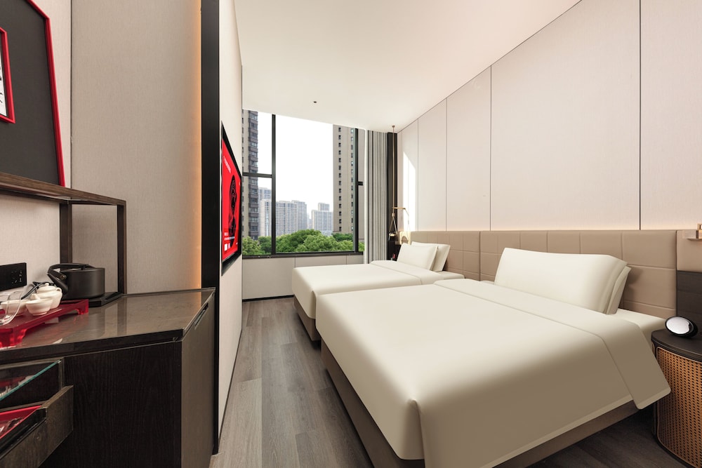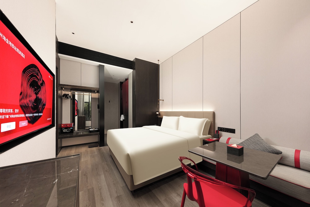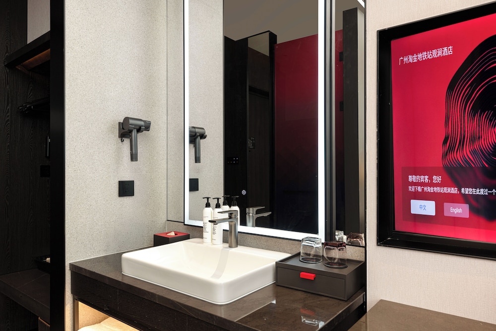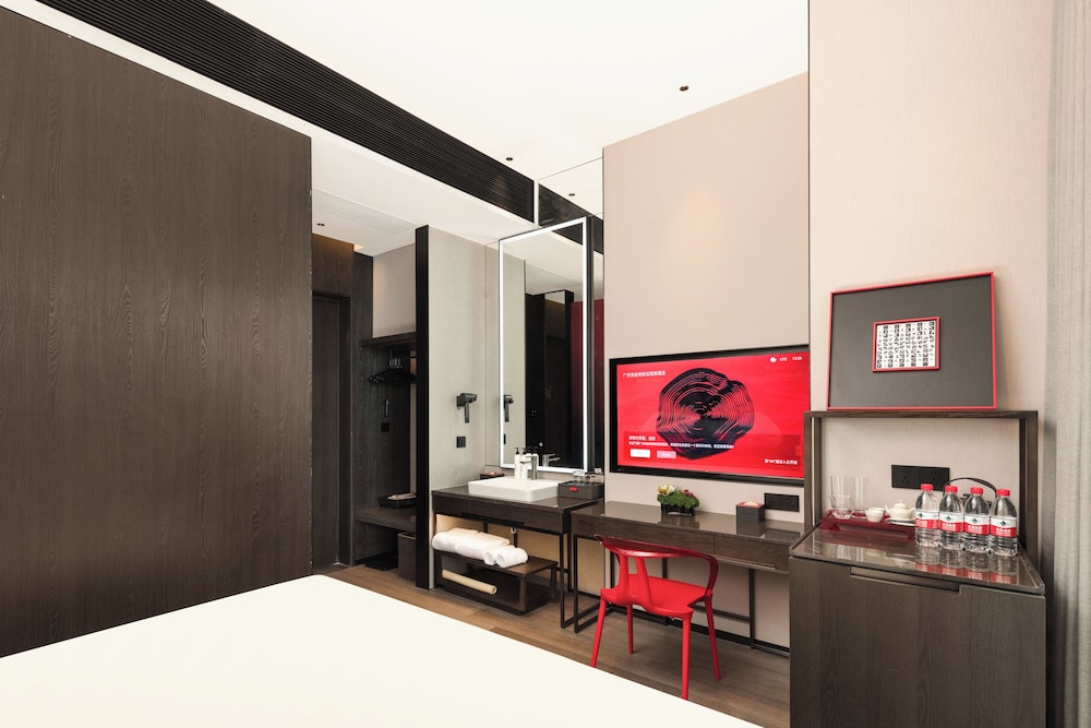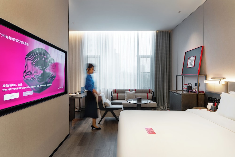 Dersom du velger GUANGZHOU TAOJIN GWEN JANE HOTEL i Guangzhou (Yuexiu) som overnattingssted vil du bare være en 4 minutters kjøretur fra Beijing Road gågate og 7 minutter fra Shangxiajiu gågate. Dette hotellet ligger 8 mi (12,9 km) unna Canton Fair Complex og 13,2 mi (21,2 km) unna Chimelong Paradise. Føl deg som hjemme i et av de 98 gjesterommene, som har minibar (inkludert) og LCD-TV. Sengen har memory foam-madrass, dundyner og sengetøy i egyptisk bomull. Du kan holde deg oppdatert med wi-fi (inkludert) på rommet, og underholdningen er sikret med kabel-TV. Rommene har privat bad med dusj, hårføner og tøfler. Avstandene som vises er rundet av til nærmeste 0,1 kilometer.