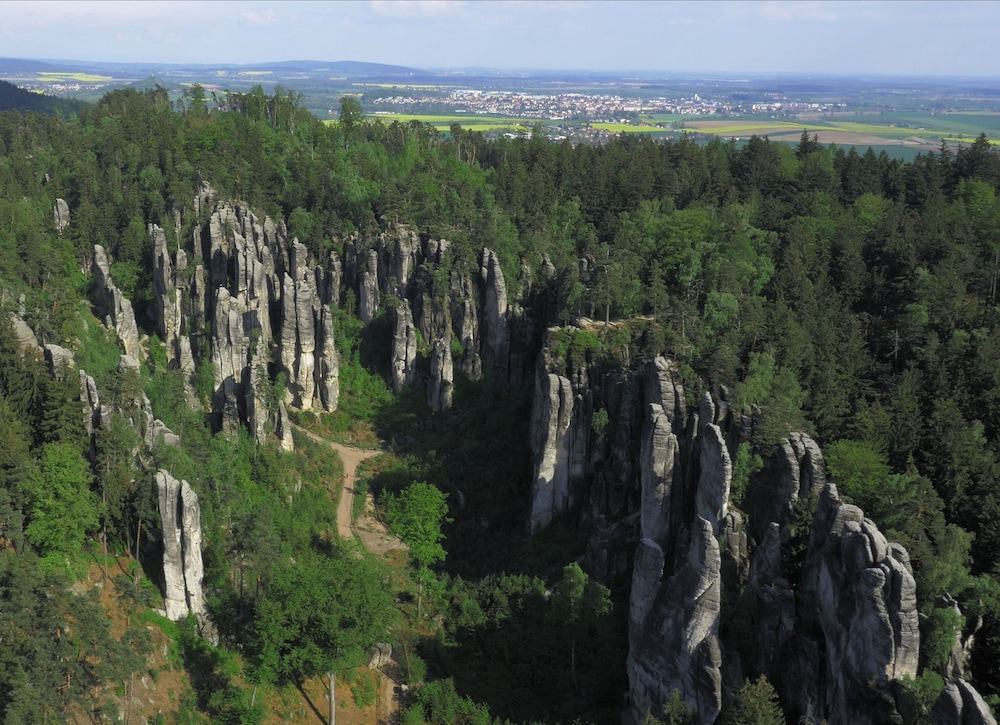 Har du Hotel reStart i Jicin som overnattingssted, er du i den historiske bydelen og kun 1 minutters gange fra Jicin Aqua Centre og 11 minutter unna Valdická-porten til fots. Dette hotellet med familievennlig profil ligger 0,7 mi (1,2 km) unna Wallenstein-torget og 0,8 mi (1,2 km) unna Jakobskirken. Føl deg som hjemme i et av de 44 gjesterommene, som er individuelt innredet og utstyrt med minibar og Flatskjerm-TV. Rommet har seng med Select Comfort-madrass. Du kan holde deg oppdatert med wi-fi (inkludert) på rommet, og underholdningen er sikret med kabel-TV. Badene inkluderer designertoalettartikler og hårføner. Avstandene som vises er rundet av til nærmeste 0,1 kilometer.
