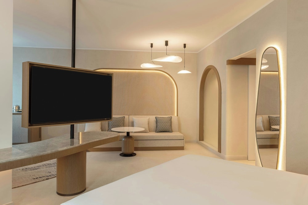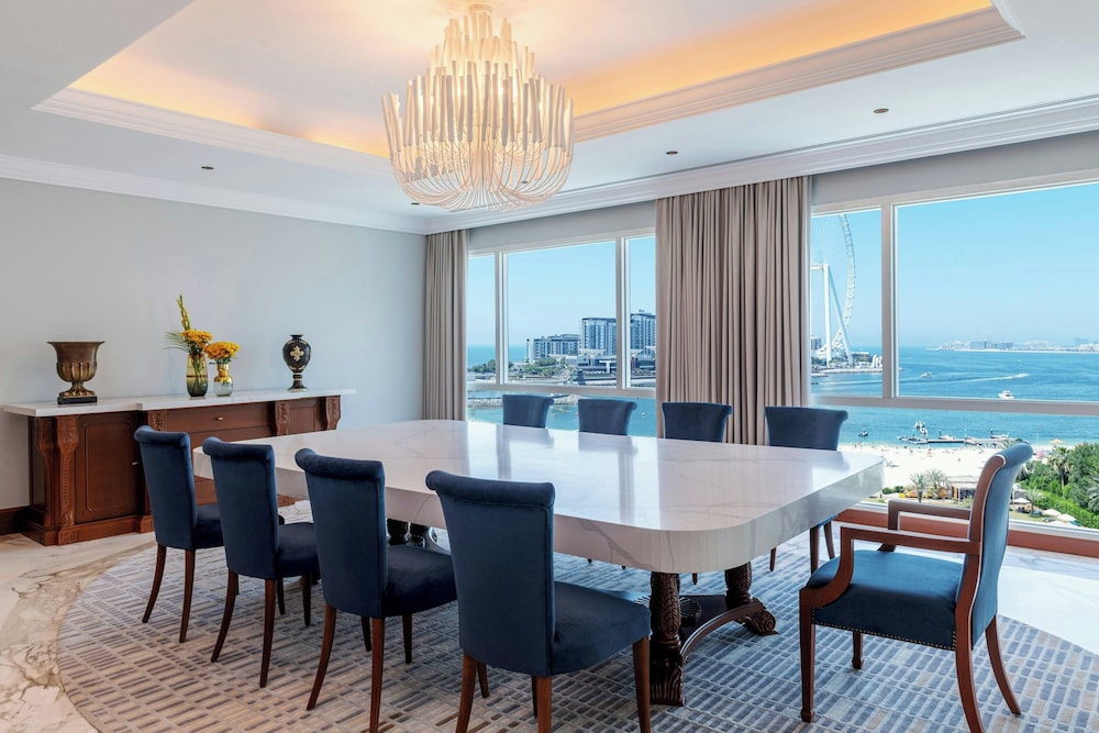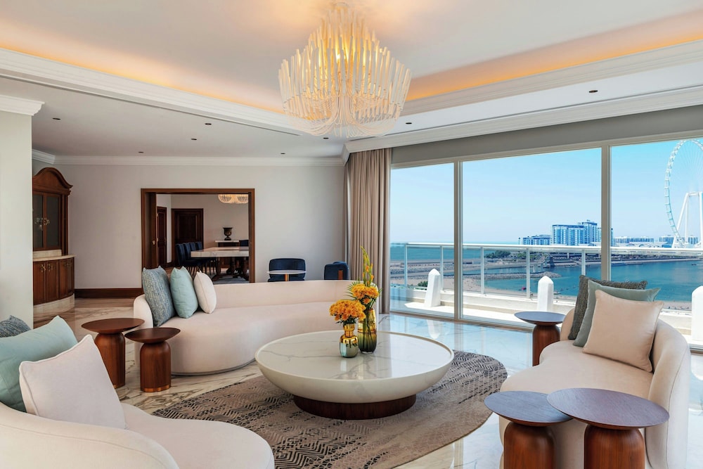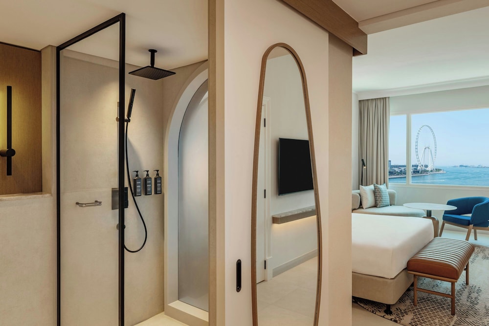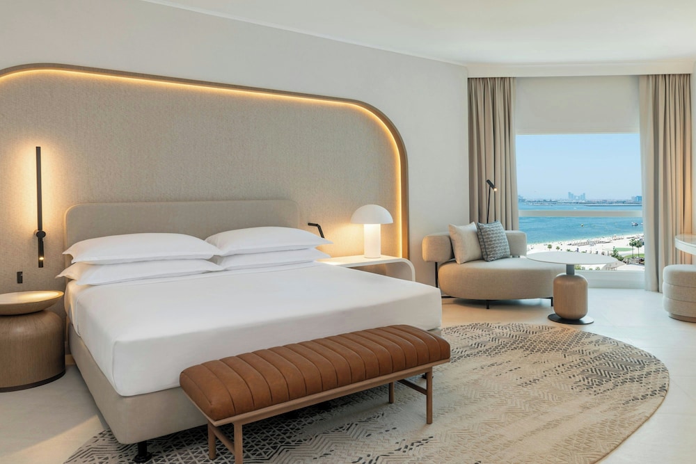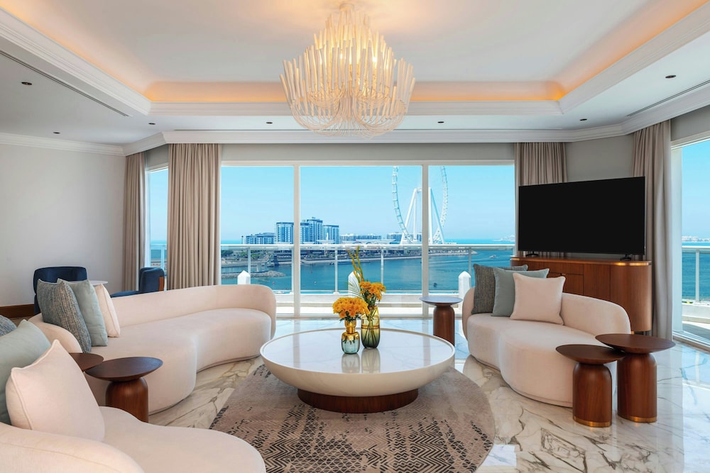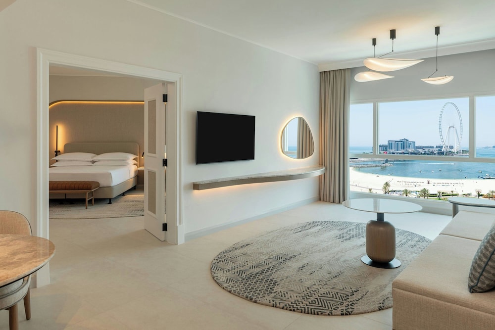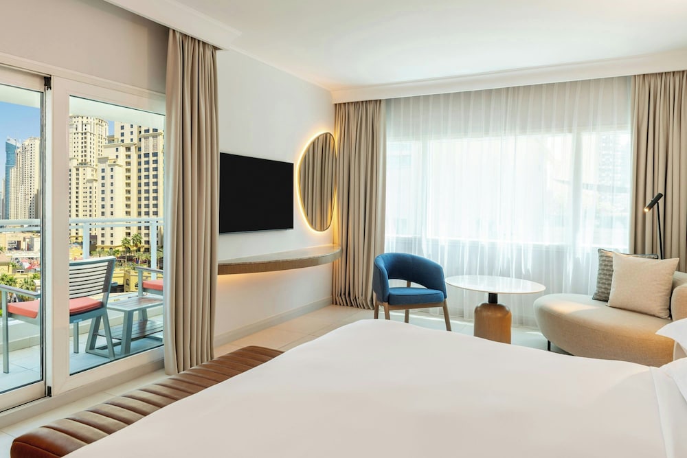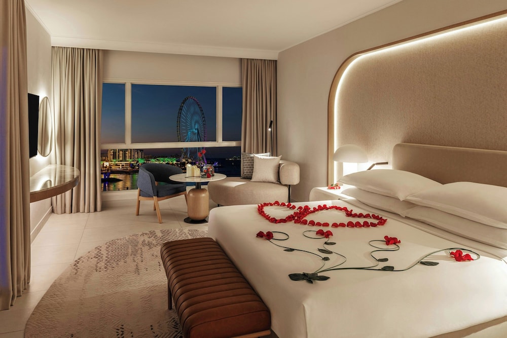 Sheraton Jumeirah Beach Resort i Dubai (Dubai marina) ligger i umiddelbar nærhet til The Walk og 6 minutter til fots fra Marina Beach. Dette hotellet ved stranden ligger 6,7 mi (10,8 km) unna Burj Al Arab og 7,6 mi (12,2 km) unna Mall of the Emirates. Føl deg som hjemme i et av de 256 aircondition-avkjølte gjesterommene som også har iPod-dokkingstasjon og LED-TV. Du kan holde deg oppdatert med wi-fi (inkludert) på rommet, og underholdningen er sikret med parabol-TV. Badene har dusj, toalettartikler (inkludert), og bideer. Rommet har telefon, samt safe med plass til bærbar PC og skrivebord. Avstandene som vises er rundet av til nærmeste 0,1 kilometer.