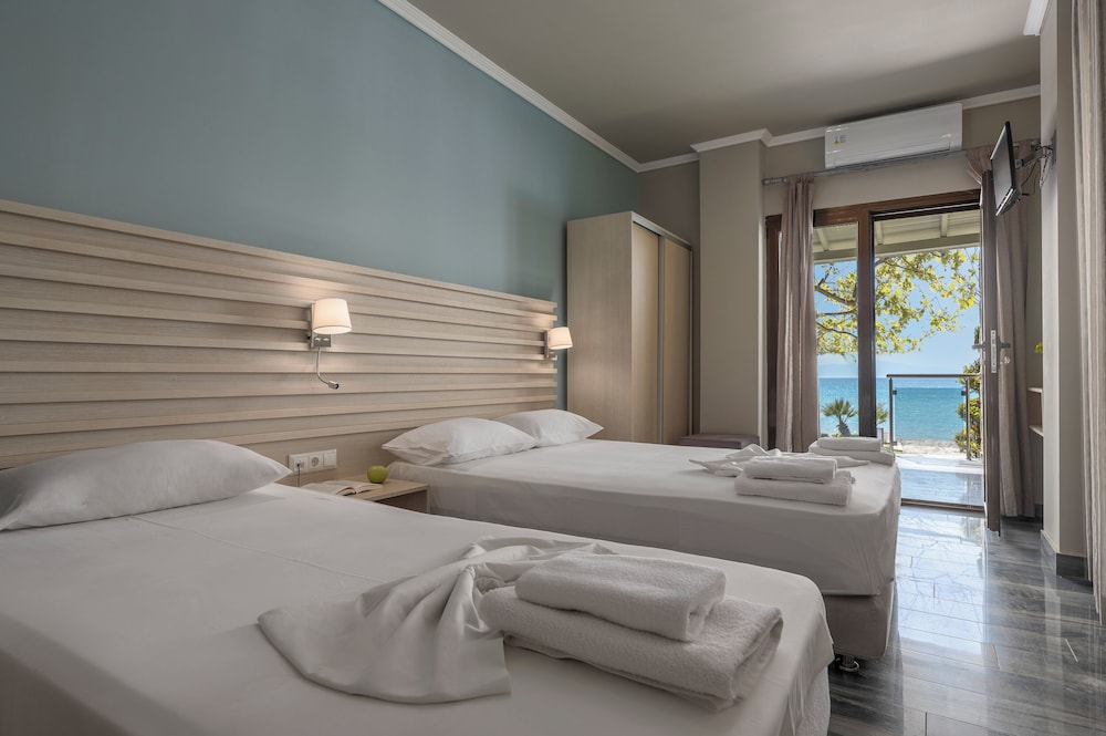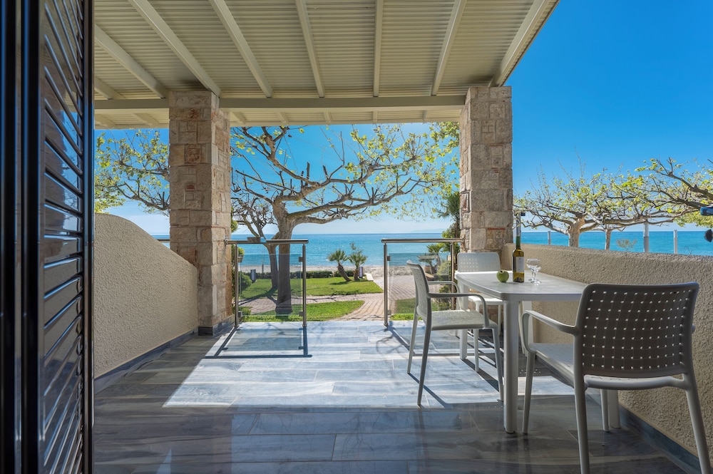 Dersom du velger Alkioni By The Sea i Kassandra som overnattingssted, bor du på stranden og dessuten kun 15 minutter unna Kalithea-stranden og Siviri-stranden med bil. Denne leiligheten ved stranden ligger 3,2 mi (5,1 km) unna Elani strand og 6,3 mi (10,2 km) unna Ammon Zeus-tempelet. Føl deg som hjemme i et av de 42 gjesterommene, som har air conditioning, og som har et tekjøkken. Underholdningen er sikret med en 32-tommers LED-TV med parabol-TV, og wi-fi (inkludert) gjør at du kan holde deg oppdatert. Rommene har mikrobølgeovn og rengjøring tilbys én gang per opphold. Avstandene som vises er rundet av til nærmeste 0,1 kilometer.