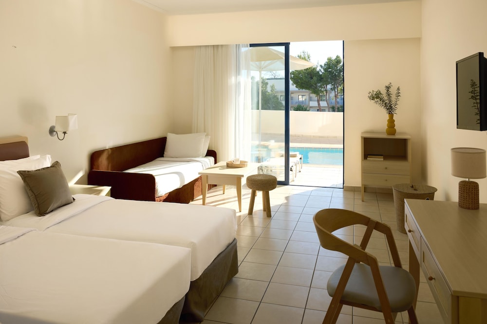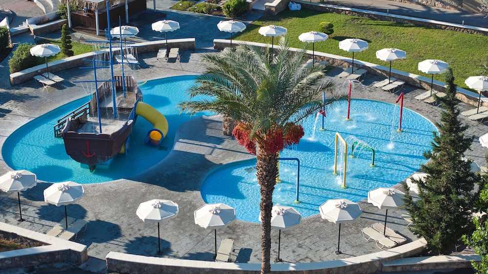 Velger du “Kiotari Miraluna Beach Resort” i Rhodos som ditt overnattingssted, vil du være på stranden og kun 10 minutters gange unna Kiotari strand og Kardamis strand. Dette hotellet med alt inkludert ligger 6,4 mi (10,3 km) unna Pefkos strand og 8,8 mi (14,2 km) unna Lindos strand. Føl deg som hjemme i et av de 410 aircondition-avkjølte gjesterommene, som også har kjøleskap og minibar. Rommene har egen balkong. Underholdningen er sikret med en 32-tommers LED-TV med parabol-TV, og wi-fi (inkludert) gjør at du kan holde deg oppdatert. Badene har dusj og hårføner. Avstandene som vises er rundet av til nærmeste 0,1 kilometer.