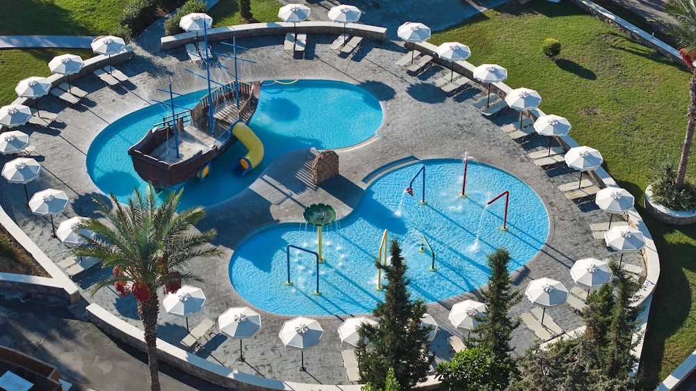 Gjester har tilgang til blant annet renseri-/vaskeritjenester, en døgnåpen resepsjon og et flerspråklig personale. Skjem bort deg selv på stedets spa, som tilbyr massasjer og kroppsbehandlinger. Her har du tilgang til blant annet 5 utendørsbassenger, et helsestudio og en badstue. Dette hotellet tilbyr også wi-fi (inkludert), concierge-tjenester og frisørsalong. Spis deg god og mett på internasjonale retter på "Sokrates" Restaurant, en av dette hotellets 4 restauranter. Får du lyst på en forfriskende drink, kan du besøke en strandbar eller en av overnattingsstedets 5 barer/lounger eller 3 bassengbarer. Frokostbuffé er inkludert og serveres daglig fra kl. 07.00 til kl. 10.30. Overnattingsstedet er stengt mellom 24. april og 3. november.Du må betale følgende avgifter på overnattingsstedet (skatter kan være inkludert):