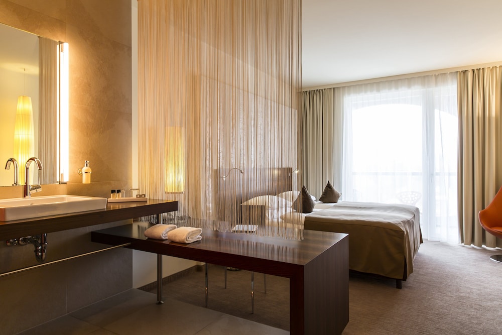 Velger du Seepark Wörthersee Resort i Klagenfurt am Woerthersee vil du være ved en innsjø og i umiddelbar nærhet til Universitetet i Klagenfurt og 7 minutters gange unna Minimundus. Dette hotellet i luksuriøs stil ligger 0,5 mi (0,8 km) unna Happ Reptilienzoo og 1,1 mi (1,8 km) unna Strandbad Klagenfurt. Overnatt i et av de 142 gjesterommene, som har Flatskjerm-TV. Du kan holde deg oppdatert med inkludert kablet og trådløst internett, og underholdningen er sikret med parabol-TV. Badene har dusj, toalettartikler (inkludert), og hårføner. Rommet har telefon, samt safe med plass til bærbar PC og skrivebord. Avstandene som vises er rundet av til nærmeste 0,1 kilometer.
