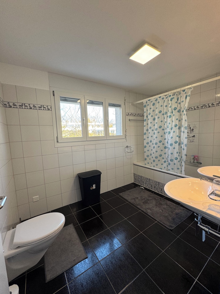 Når du har VK - Zürich Airport - Homestay - Härdlen i Kloten som overnattingssted, bor du nær togstasjonen, kun 15 minutter å kjøre fra Hallenstadion og Bahnhofstrasse.  Denne leiligheten ligger 8,1 mi (13 km) unna Letzigrund stadion og 8,5 mi (13,6 km) unna Zoo Zürich. Føl deg som hjemme i et av de 5 gjesterommene, som har mikrobølgeovn. Gjester kan lage måltider i et delt/felles kjøkken. Du kan holde deg oppdatert med wi-fi (inkludert) på rommet. Badene har badekar eller dusj og hårføner. Avstandene som vises er rundet av til nærmeste 0,1 kilometer.