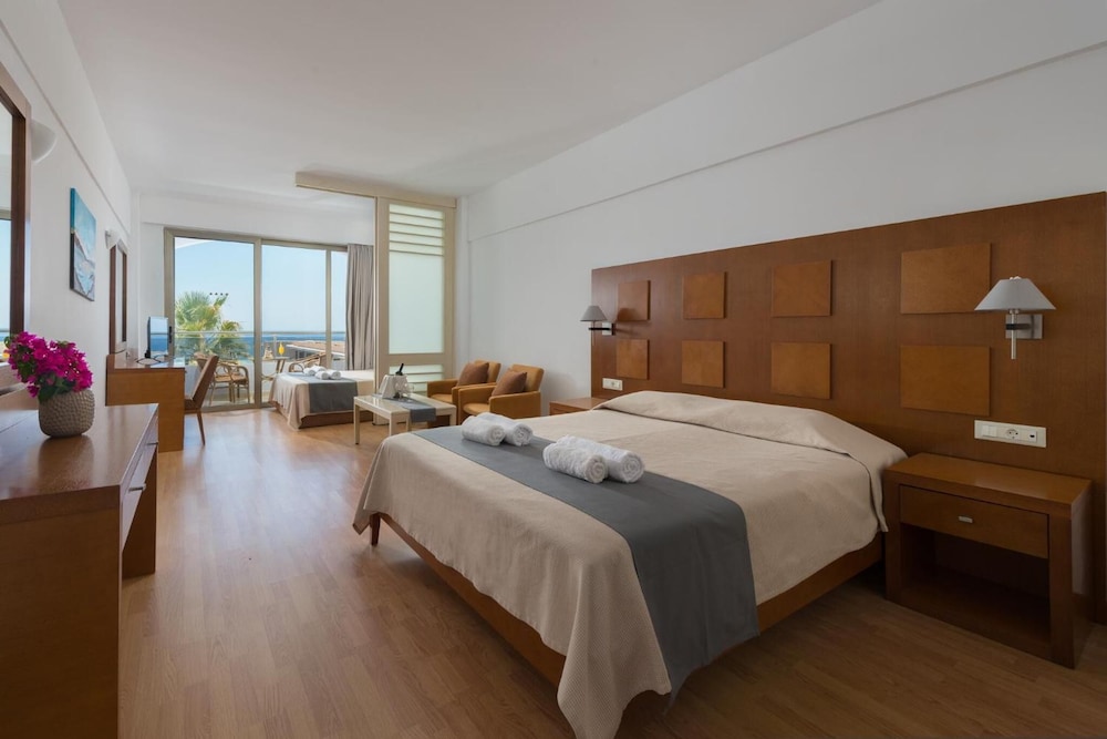 Når du har Lutania Beach Hotel i Rodos som overnattingssted, bor du på stranden og rett ved både De egeiske øyer og Kolimbia Beach. Dette hotellet med hele 4 stjerner ligger 3,1 mi (5,1 km) unna Tsambika strand og 10,8 mi (17,3 km) unna Faliraki badeland. Føl deg som hjemme i et av de 123 aircondition-avkjølte gjesterommene, som også har kjøleskap. Med wi-fi inkludert på rommet holder du deg oppkoblet. Rommene har privat bad med kombinert dusj/badekar, dype avslapningsbadekar og regndusjhode. Rommene har blendingsgardiner/gardiner og rengjøring tilbys daglig. barneseng/babyseng (inkludert) kan fås på forespørsel. Avstandene som vises er rundet av til nærmeste 0,1 kilometer.