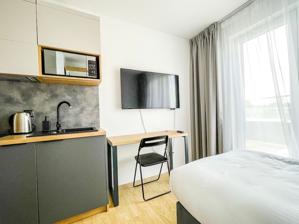 Velger du Milo Aparthotel i Wroclaw (Krzyki) som overnattingssted, vil du ha mindre enn 10 minutter å kjøre til Wrocław torg og Wroclaw vannpark. Dette hotellet ligger 1 mi (1,6 km) unna Den gamle jødiske kirkegården og 1,4 mi (2,2 km) unna Morskie Oko-sjøen. Føl deg som hjemme i et av de 62 aircondition-avkjølte gjesterommene som også har kjøleskap og Flatskjerm-TV. Du kan holde deg oppdatert med wi-fi (inkludert) på rommet. Badene har dusj. Rommene har skrivebord og mikrobølgeovn, og rengjøring tilbys etter avtale. Avstandene som vises er rundet av til nærmeste 0,1 kilometer.