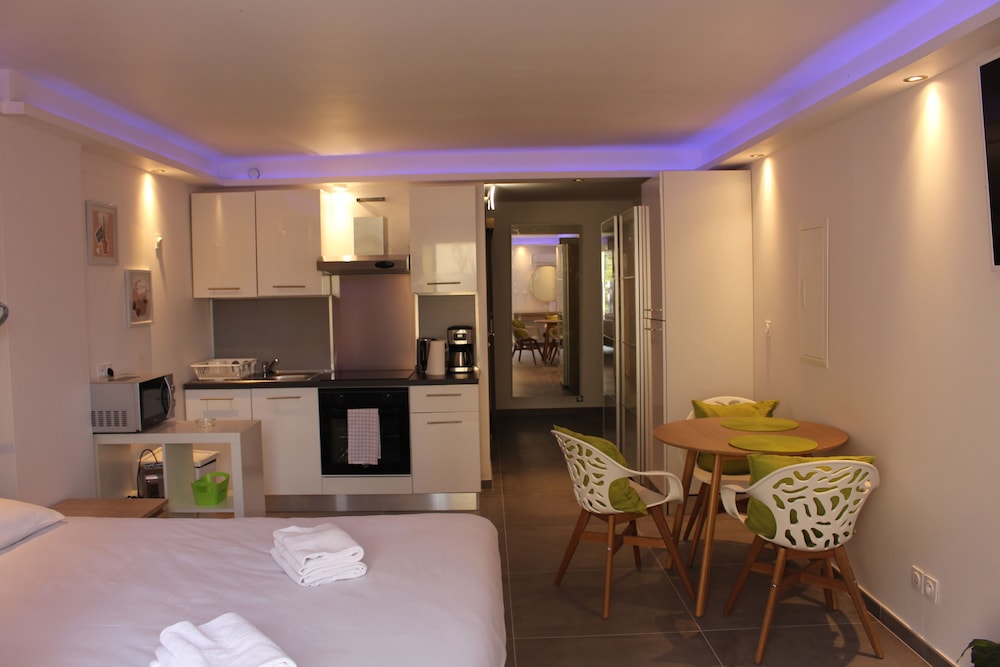 Velger du Residence les jardins de Natallia som overnattingssted i La Seyne-sur-Mer, vil du være mindre enn en 15 minutters kjøretur unna Toulon havn og Embiez-øyene. Denne leiligheten ligger 15 mi (24,1 km) unna Circuit Paul Ricard (motorsportsbane) og 1,6 mi (2,6 km) unna Pont Levant. Føl deg som hjemme i et av de 11 aircondition-avkjølte gjesterommene som også har kjøleskap og Flatskjerm-TV. Du kan holde deg oppdatert med wi-fi (inkludert) på rommet, og underholdningen er sikret med digital-TV. Badene har badekar eller dusj og hårføner. Rommene har mikrobølgeovn og kaffetrakter/tekoker, og rengjøring tilbys etter avtale. Avstandene som vises er rundet av til nærmeste 0,1 kilometer.