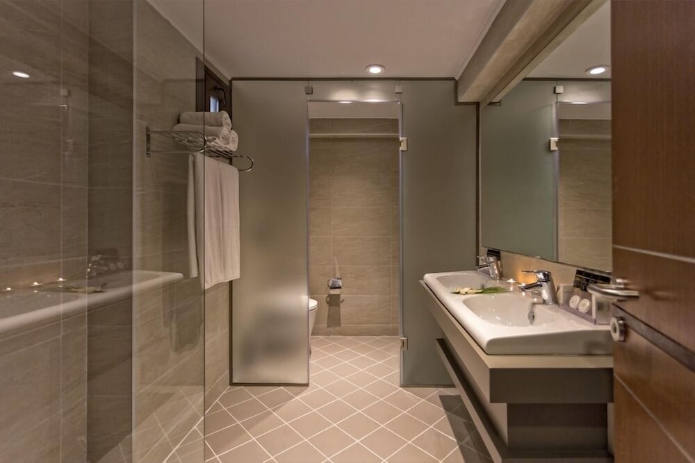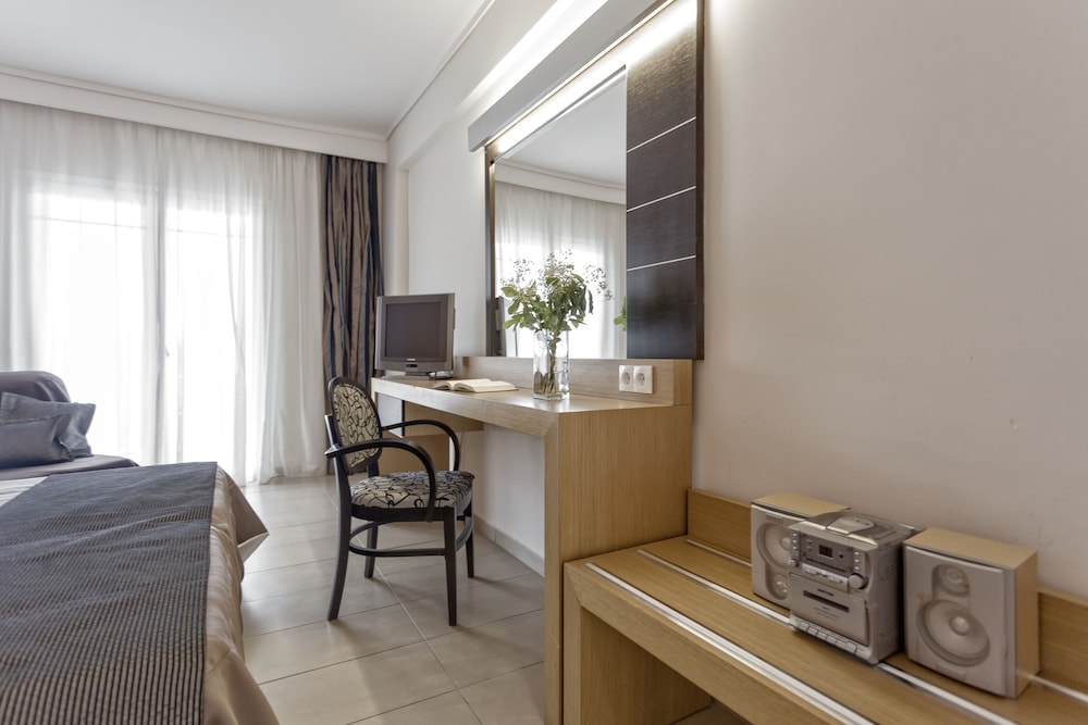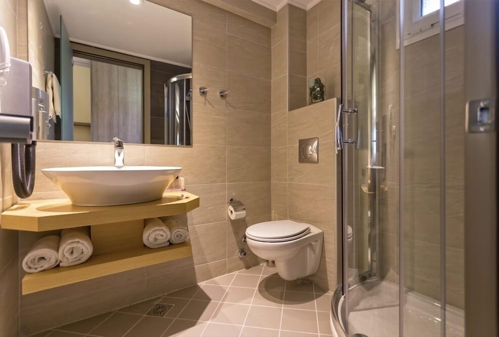 Når Lagomandra Hotel & Spa i Sithonia er overnattingsstedet ditt, er du nær stranden, rett ved Lagomandra-stranden og en 3 minutters kjøretur unna Castello beach. Dette hotellet med eksklusive fasiliteter ligger 6,8 mi (11 km) unna Nikiti strand og 3,2 mi (5,2 km) unna Spathies Beach. Føl deg som hjemme i et av de 120 aircondition-avkjølte gjesterommene som også har kjøleskap og LCD-TV. Rommene har egen møblert balkong. Du kan holde deg oppdatert med wi-fi (inkludert) på rommet, og underholdningen er sikret med parabol-TV. Rommene har privat bad med badekar eller dusj, toalettartikler (inkludert) og hårføner. Avstandene som vises er rundet av til nærmeste 0,1 kilometer.