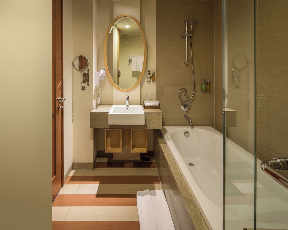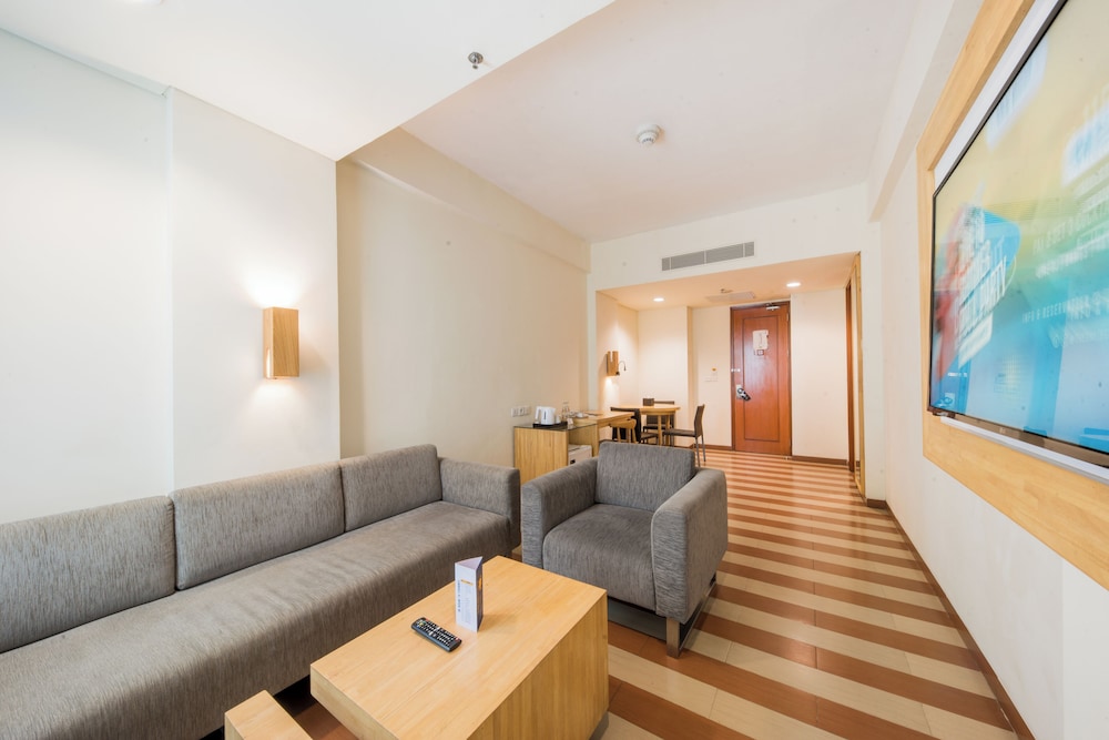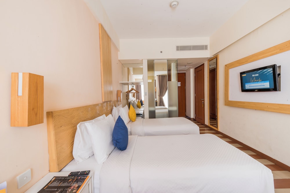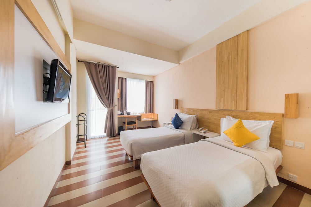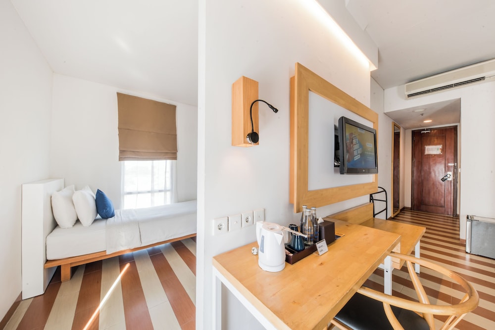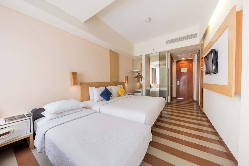 Gjester har tilgang til blant annet et forretningssenter, aviser i lobbyen (inkludert) og renseri-/vaskeritjenester. Dette hotellet tilbyr 3 møtelokaler for ulike typer møter og eventer. Gjestene tilbys flyplasstransport døgnet rundt, mot et tillegg, og ubetjent parkering (inkludert) er tilgjengelig i nærheten. Slapp av på stedets spa, hvor du kan nyte massasjer, kroppsbehandlinger, og ansiktsbehandlinger. Her har du tilgang til blant annet 2 utendørsbassenger, en badstue og et treningssenter. Dette hotellet har dessuten wi-fi (inkludert), concierge-tjenester og bankettsal. Ta deg noe å spise på Sky Deck at Rooftop, en av dette hotellets 2 restauranter, eller bli på rommet og benytt deg av romservice (på fastsatte tidspunkter). Du kan også få noe lett å bite i på kafeen. Stedet har en bassengbar samt 2 barer/lounger hvor du kan koble av med noe godt å drikke. Frokostbuffé tilbys daglig fra kl. 07.00 til kl. 10.00 mot et tillegg. I henhold til lokale regelverk, må alle besøkende oppholde seg innendørs på overnattingsstedet under Stillhetens dag/Nyepi i et helt døgn (fra kl. 06.00). Stillhetens dag er en bevegelig helligdag som kommer i mars eller april. Det vil ikke være mulig å sjekke inn eller ut denne dagen. Ngurah Rai lufthavn (Bali internasjonale flyplass) er også stengt denne dagen.- Pris for frokostbuffé: ca. IDR 75000 for voksne og IDR 55000 for barn