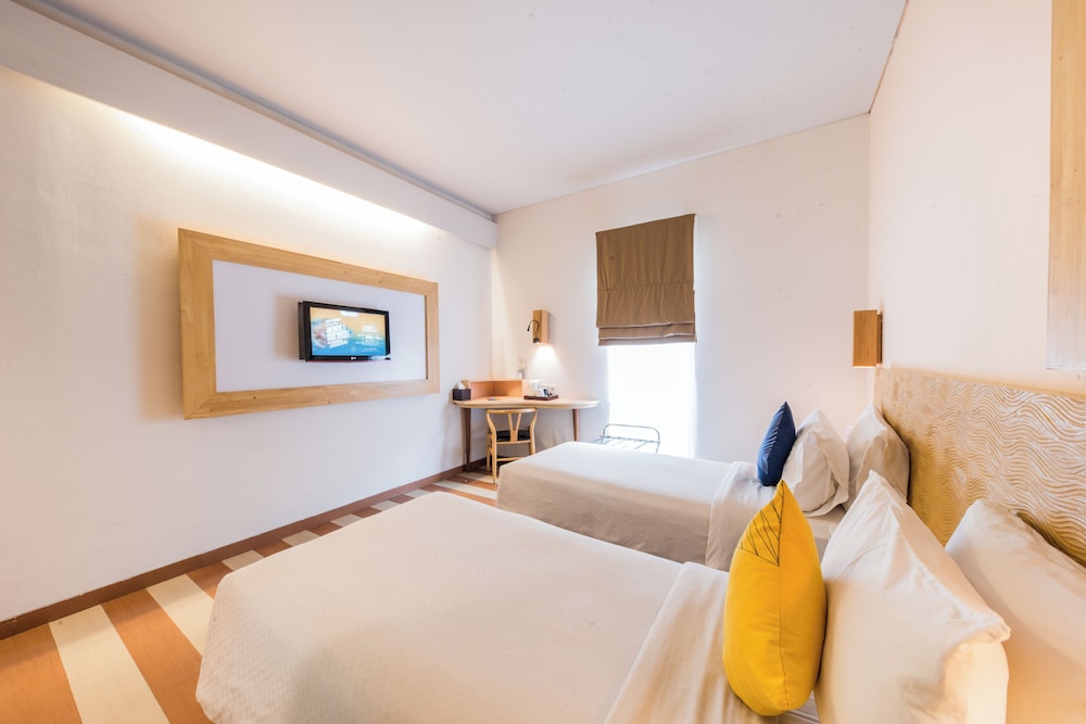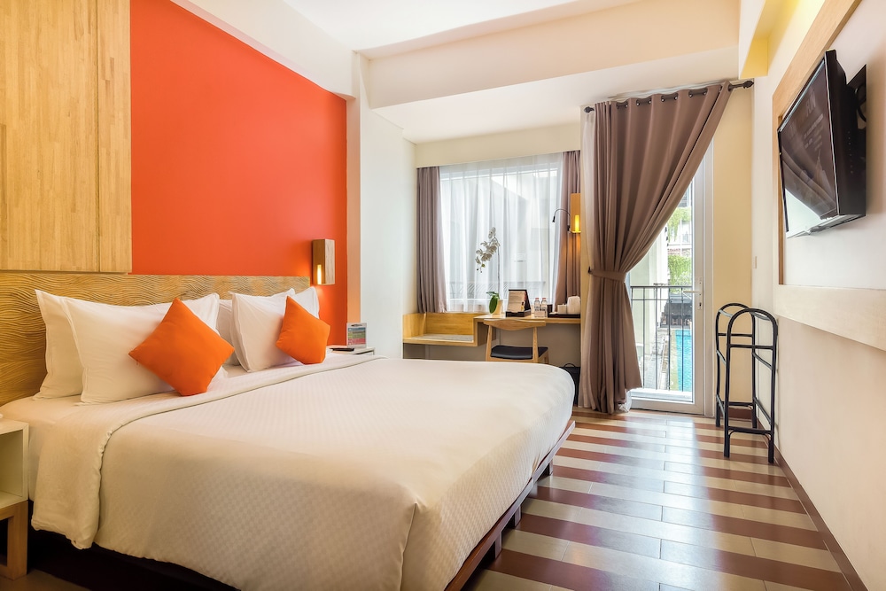 Dersom du velger The ONE Legian vil du bo sentralt i Kuta, en 5-minutters spasertur fra Bali Bombing Memorial og 15 minutter fra Legian-stranden. Dette hotellet med spa ligger 1,4 mi (2,2 km) unna Kuta strand og 1,5 mi (2,4 km) unna Beachwalk kjøpesenter. Føl deg som hjemme på et av de 300 aircondition-avkjølte gjesterommene, som inneholder peis og LCD-TV. Du kan holde deg oppdatert med wi-fi (inkludert) på rommet, og underholdningen er sikret med parabol-TV. Rommet har telefon, samt safe og skrivebord. Avstandene som vises er rundet av til nærmeste 0,1 kilometer.