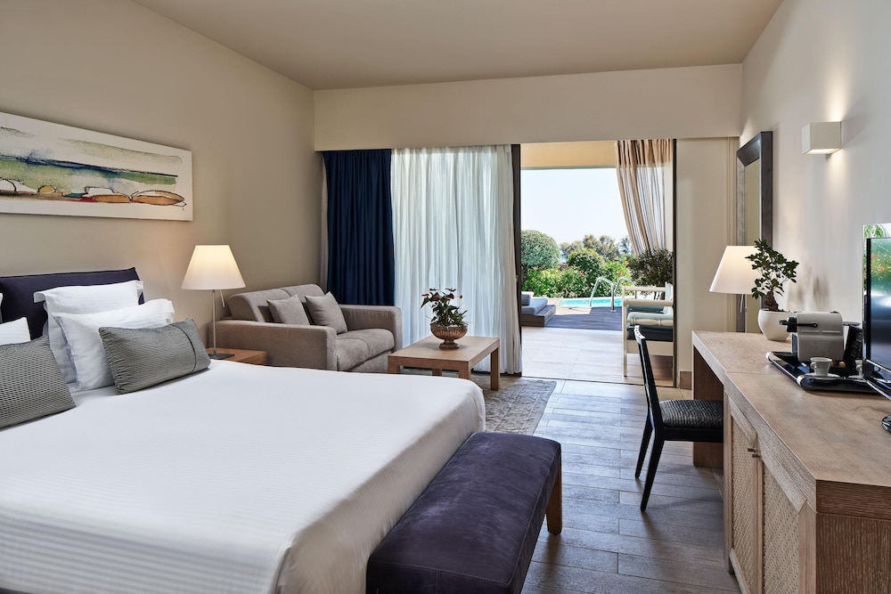 Gjester har tilgang til blant annet en PC-stasjon, renseri-/vaskeritjenester og en døgnåpen resepsjon. Planlegger du en event i Rhodos? Som en av dette hotellet sine gjester tilbys du møte- og konferanserom på opp til 56 kvadratmeter, blant annet konferanserom og møterom. Gjestene tilbys flyplasstransport døgnet rundt, mot et tillegg, og ubetjent parkering (inkludert) er tilgjengelig i nærheten. Slapp av på stedets spa, hvor du kan nyte massasjer, kroppsbehandlinger, og ansiktsbehandlinger. Etter et bad i et av stedets 3 utendørsbassenger kan du slappe av på den private stranden. Dette hotellet tilbyr også wi-fi (inkludert), concierge-tjenester og gavebutikk/kiosk. Smak på internasjonale retter på Pentapolis, en av dette hotellets 3 restauranter, eller bli på rommet og benytt deg av romservice (på fastsatte tidspunkter). Du kan også få noe lett å bite i på 2 kafeer. Stedet har en strandbar, en bassengbar og 3 barer/lounger hvor du kan slappe av med noe forfriskende å drikke. Frokostbuffé er inkludert. Overnattingsstedet er stengt mellom 1. november og 30. april.Du må betale følgende avgifter på overnattingsstedet (skatter kan være inkludert):