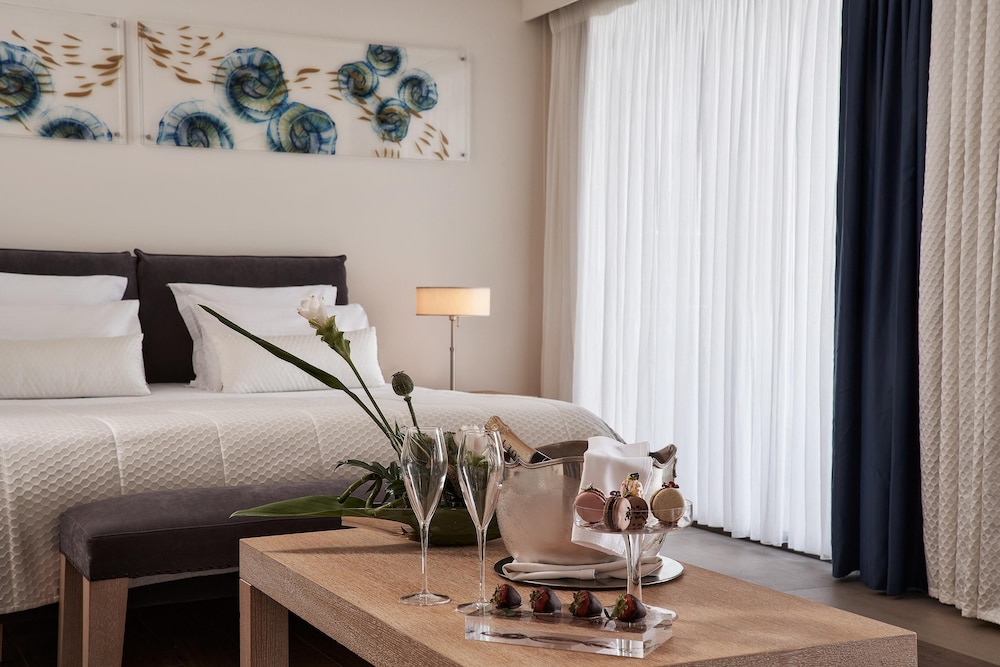 Velger du Aquagrand Artistic Luxury Beach Resort - Adults Only som overnattingssted i Rhodos, har du bare 15 minutter å kjøre til både Lindos strand og Pefkos strand. Dette hotellet ved stranden ligger 15,6 mi (25,1 km) unna Stegna-stranden og 1,1 mi (1,7 km) unna Kalithea Thermi. Føl deg som hjemme i et av de 136 gjesterommene. Du kan holde deg oppdatert med wi-fi (inkludert) på rommet. Rommene har safe og rengjøring tilbys daglig. Avstandene som vises er rundet av til nærmeste 0,1 kilometer.