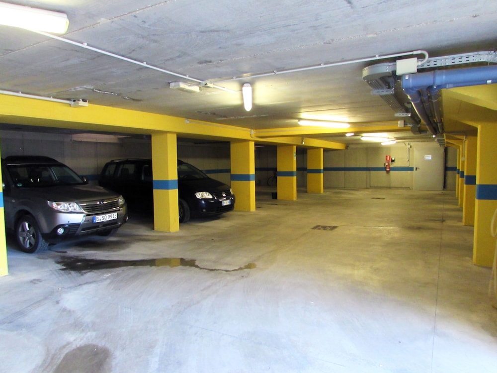 - Pris for selvbetjent parkering under tak: 10 EUR per natt (ubegrenset antall inn- og utkjøringer)