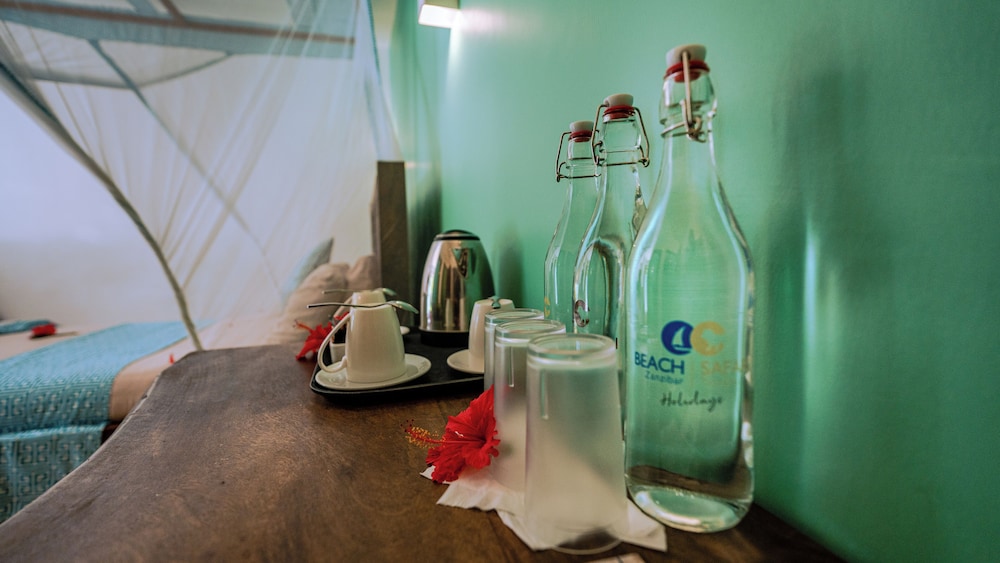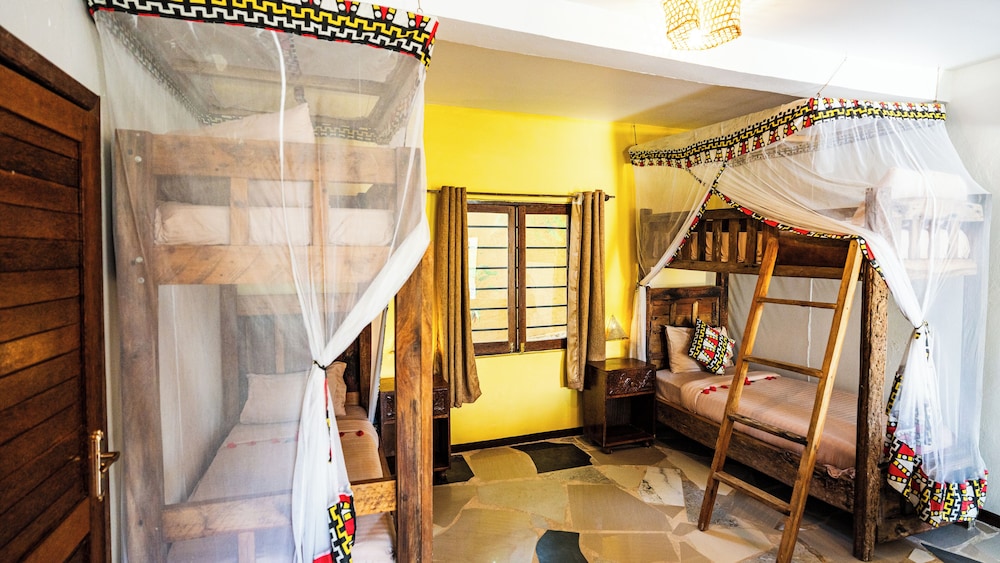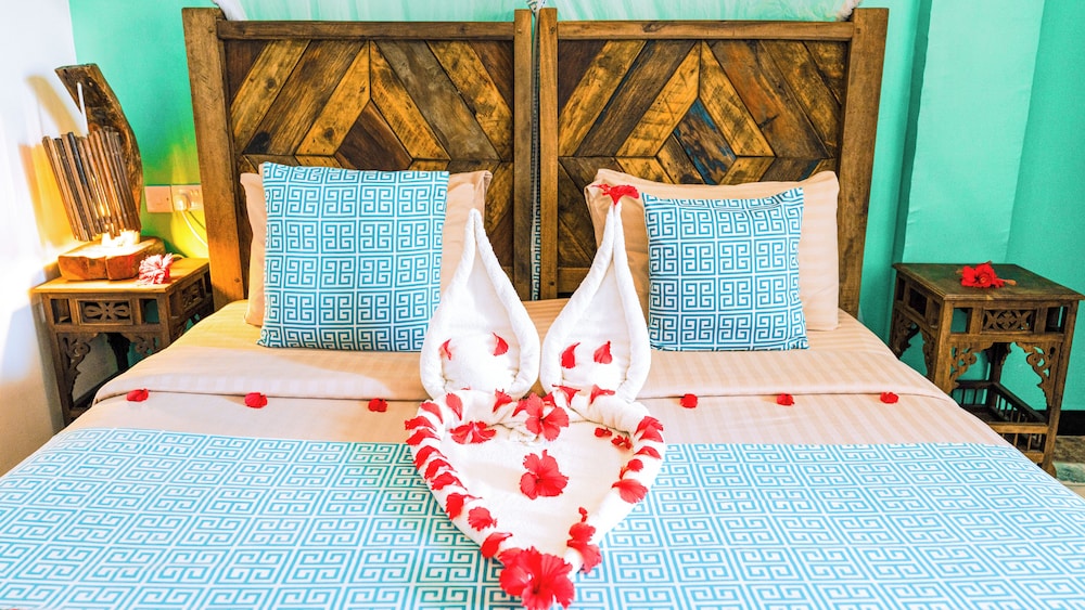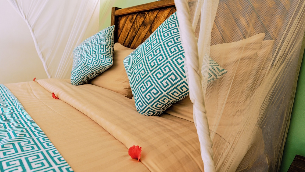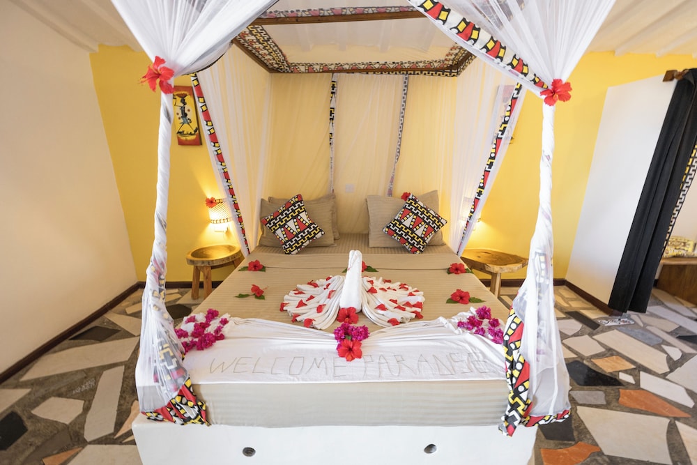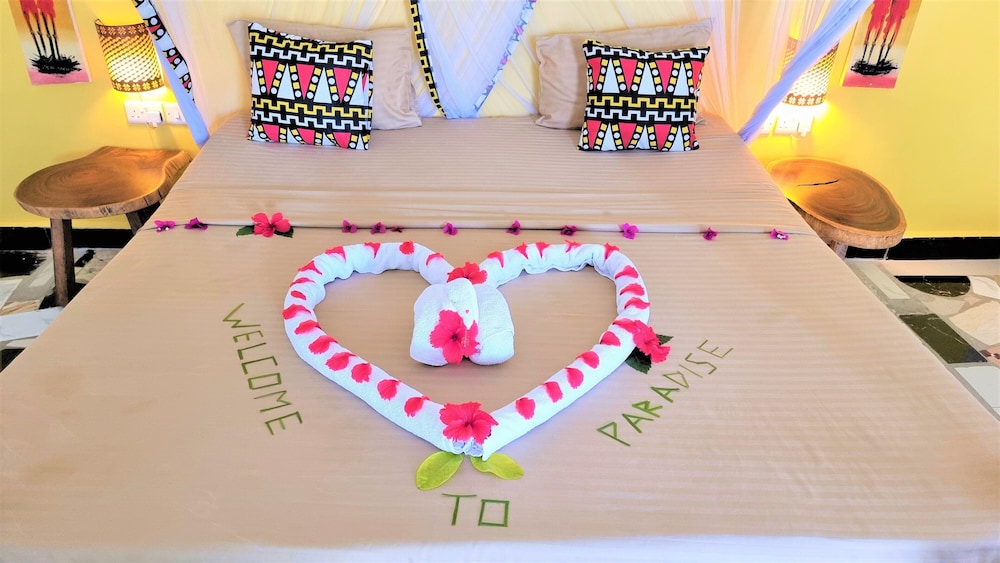 Når du bor på Paradise Beach Resort i Uroa bor du fint til på stranden, samtidig som du er en 3 minutters spasertur fra Uroa Beach og en 4 minutters kjøretur fra Marumbi Beach. Dette hotellet ved stranden ligger 3,4 mi (5,5 km) unna Pongwe Beach og 6,6 mi (10,5 km) unna Jozani Chwaka Bay National Park. Føl deg som hjemme i et av de 98 aircondition-avkjølte gjesterommene. Sengen har memory foam-madrass og dundyner. Du kan holde deg oppdatert med wi-fi (inkludert) på rommet. Rommene har privat bad med dusj, toalettartikler (inkludert) og hårføner. Avstandene som vises er rundet av til nærmeste 0,1 kilometer.