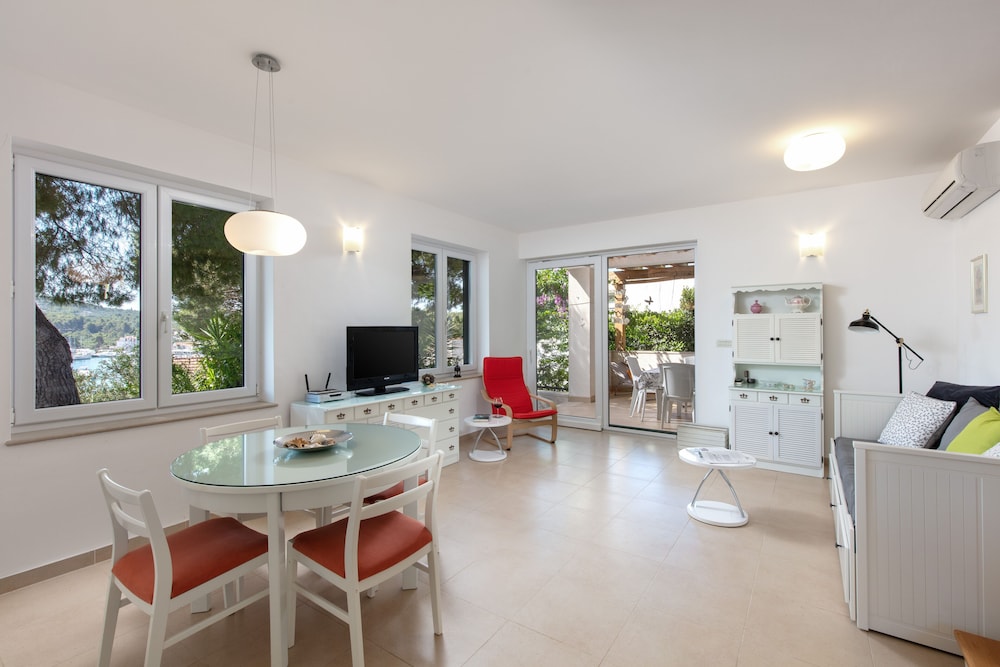 Har du denne ferieboligen i Milna som overnattingssted, er du i nærheten av strand og kun 1 minutters gange fra Kirken Vår Frue av Bebudelsen og 13 minutter unna Marina Vlaska - Milna til fots. Denne ferieboligen med familievennlig profil ligger 25,9 mi (41,7 km) unna Split havn og 22 mi (35,4 km) unna Bacvice-stranden. Føl deg som hjemme i denne ferieboligen, som er utstyrt med airconditioning og et kjøkken med kjøleskap og stekeovn. Underholdningen er sikret med en flatskjerm-TV med parabol-TV, og wi-fi (inkludert) gjør at du kan holde deg oppdatert. Bekvemmelighetene omfatter skrivebord og mikrobølgeovn, og rengjøring tilbys etter avtale. Avstandene som vises er rundet av til nærmeste 0,1 kilometer.