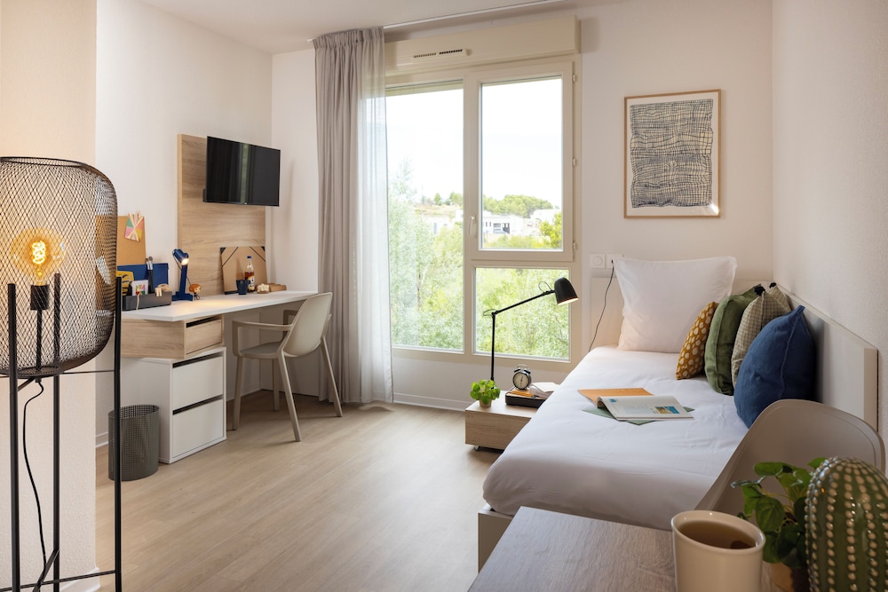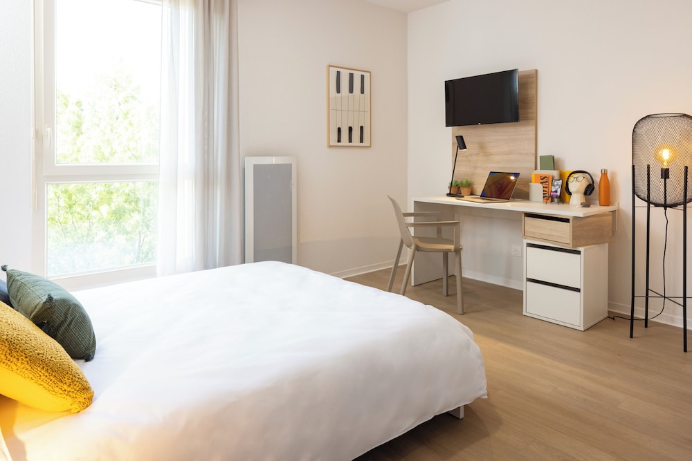 Velger du Apparteo Montpellier som overnattingssted i Montpellier, vil du være mindre enn en 15 minutters kjøretur unna Place de la Comedie og Domaine d'O. Dette leilighetshotellet ligger 1,6 mi (2,6 km) unna IUT Montpellier GEII og 1,6 mi (2,6 km) unna Universite Montpellier I. Føl deg som hjemme i et av de 15 gjesterommene, som har et tekjøkken med komfyrtopp og mikrobølgeovn. Underholdningen er sikret med en 30-tommers flatskjerm-TV med digital-TV, og wi-fi (inkludert) gjør at du kan holde deg oppdatert. Rommene har skrivebord og kaffetrakter/tekoker, og rengjøring tilbys ukentlig. Avstandene som vises er rundet av til nærmeste 0,1 kilometer.