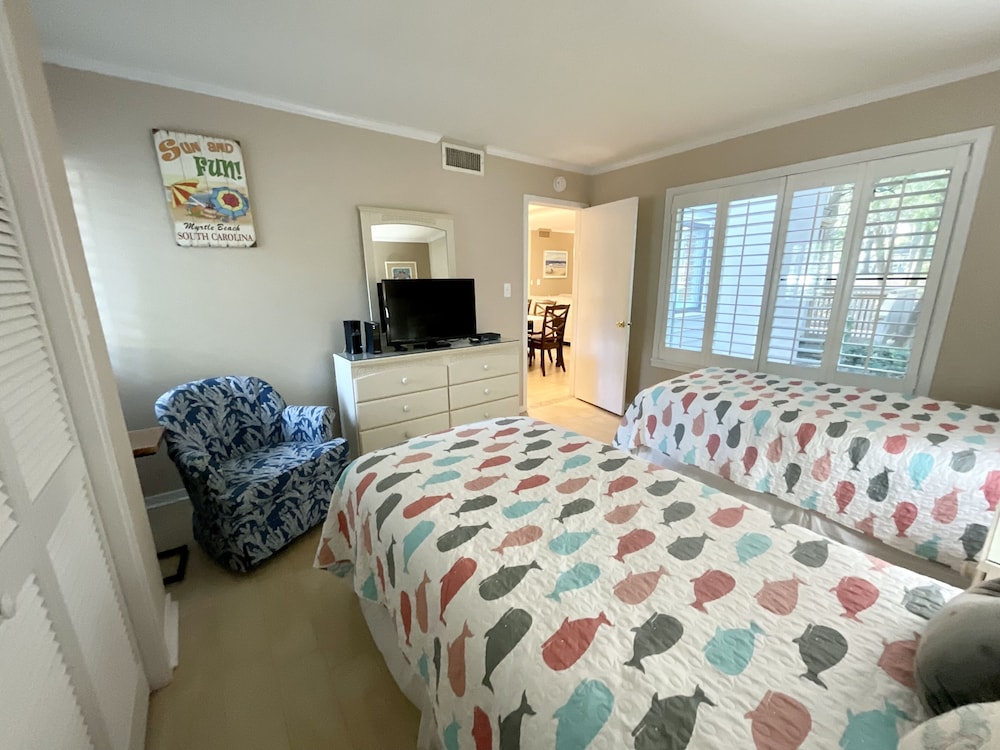 Når du har denne villaen i Myrtle Beach som overnattingssted, bor du nær golfbanen, kun 5 minutter å kjøre fra Myrtle Beach Beaches og Apache Pier. Denne villaen med golfmuligheter ligger 8,4 mi (13,5 km) unna Broadway at the Beach (kjøpesenter) og 9,1 mi (14,6 km) unna Myrtle Beach Boardwalk. Føl deg som hjemme i denne villaen, som er utstyrt med kjøleskap. Wi-fi (inkludert) gjør at du kan holde deg oppdatert. Badet har badekar eller dusj.Bekvemmelighetene omfatter kaffetraktere/tekokere og strykejern/-brett. Avstandene som vises er rundet av til nærmeste 0,1 kilometer.