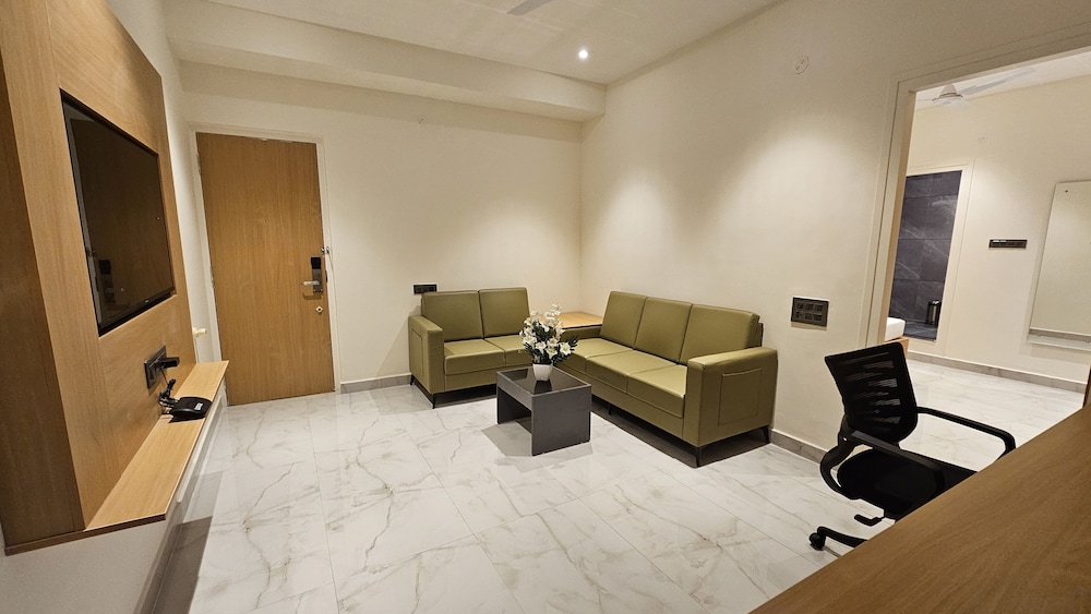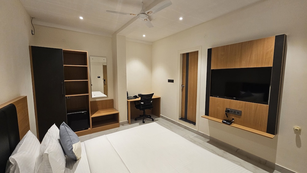 Velger du Emerald Urban Comforts som overnattingssted i Mysore, er du bare 15 minutters gange unna både Mysore Palace og Kukkaranahalli Lake. Dette hotellet ligger 0,5 mi (0,8 km) unna Oriental Research Institute og 0,5 mi (0,8 km) unna Chamarajeshwara Temple. Føl deg som hjemme i et av de 48 aircondition-avkjølte gjesterommene som også har minibar og smart-TV. Du kan holde deg oppdatert med wi-fi (inkludert) på rommet, og underholdningen er sikret med kabel-TV. Badene har dusj, toalettartikler (inkludert), og tøfler. Rommene har safe med plass til bærbar PC og skrivebord, og rengjøring tilbys daglig. Avstandene som vises er rundet av til nærmeste 0,1 kilometer.