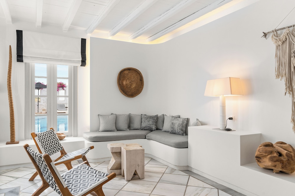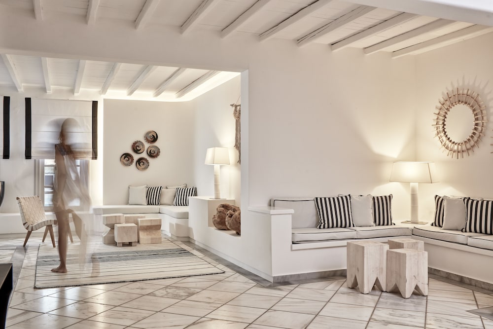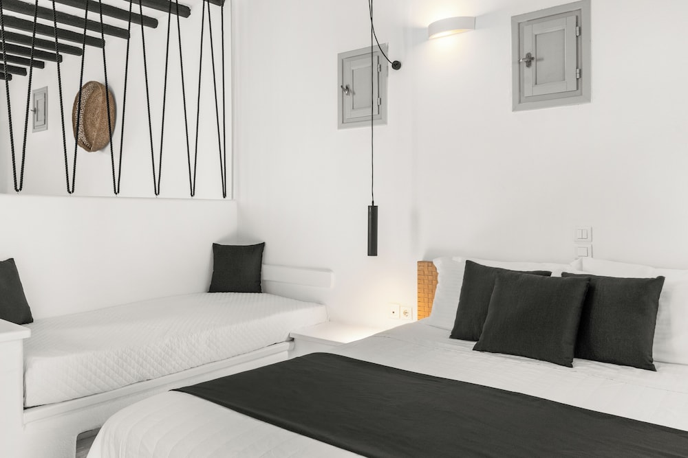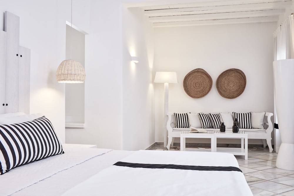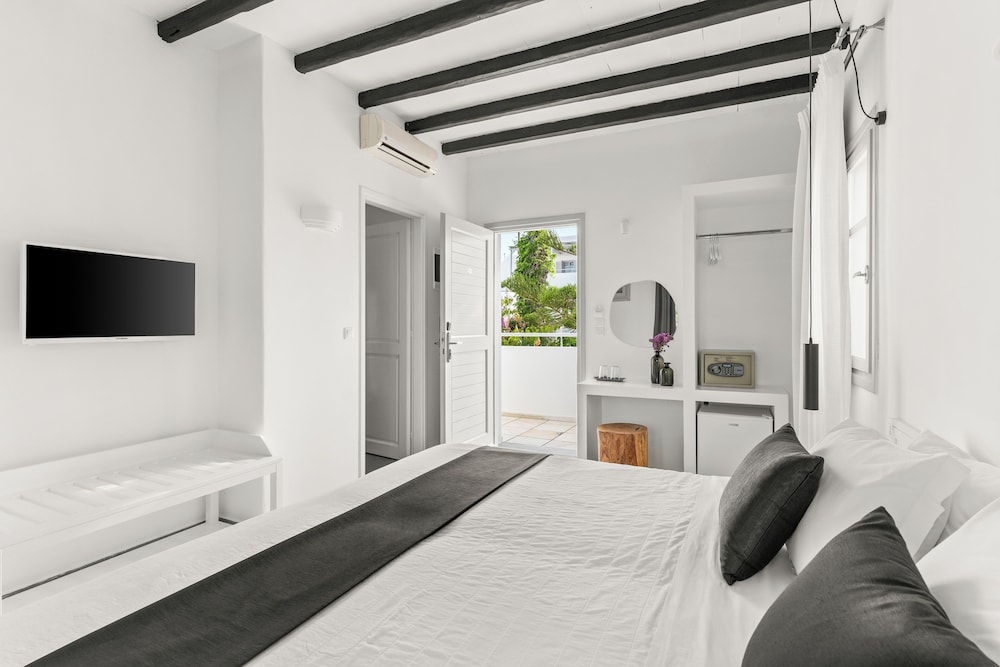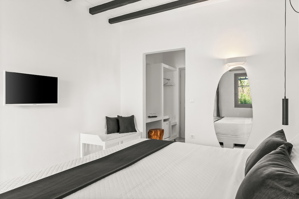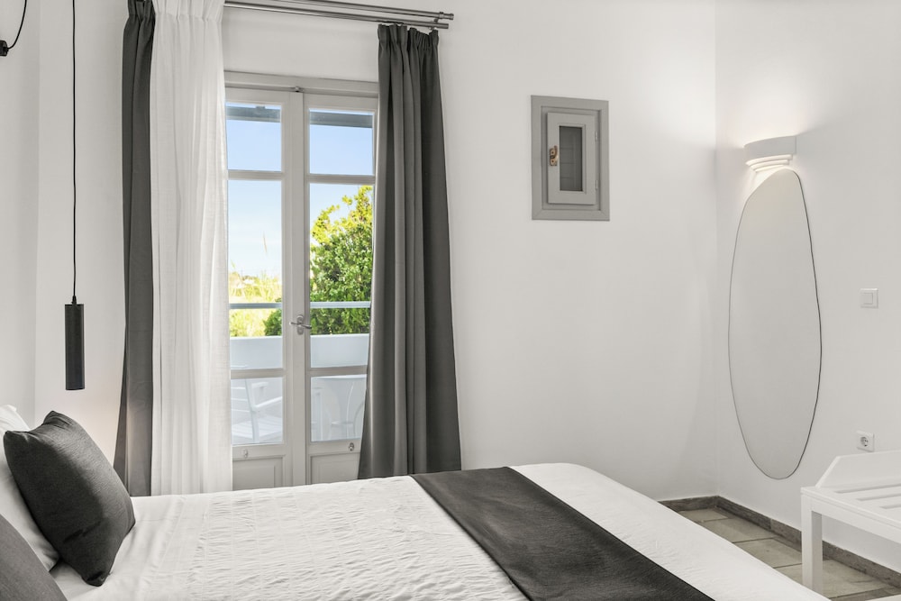 Når du har Mr & Mrs White Paros i Paros som overnattingssted, bor du i nærheten av strand, kun 15 minutter å kjøre fra Parikia havn og Naousa-havnen. Dette hotellet i luksuriøs stil ligger 26,8 mi (43,1 km) unna Naxos havn og 27,7 mi (44,6 km) unna Agios Georgios strand. Føl deg som hjemme i et av de 49 aircondition-avkjølte gjesterommene, som også har kjøleskap. Du kan holde deg oppdatert med wi-fi (inkludert) på rommet, og underholdningen er sikret med parabol-TV. Badene har dusj, toalettartikler (inkludert), og hårføner. Rommet har telefon og safe. Rengjøring tilbys daglig. Avstandene som vises er rundet av til nærmeste 0,1 kilometer.