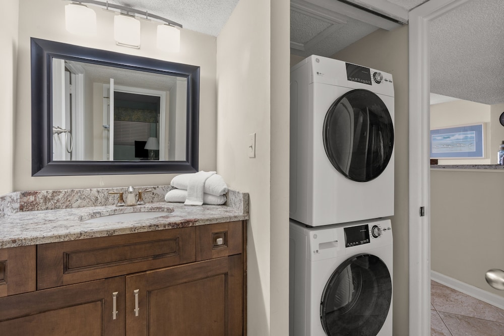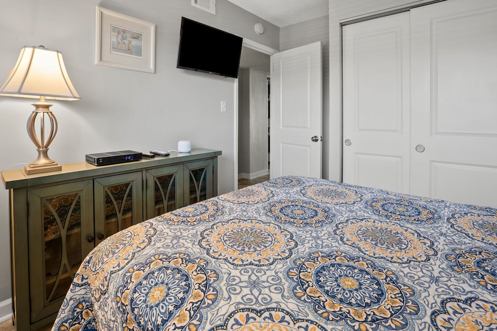 Når du har denne leiligheten i North Myrtle Beach som overnattingssted, bor du på stranden, kun 3-minutters gange fra North Myrtle Beach Beaches og en 3 minutters kjøretur fra Barefoot Landing. Denne leiligheten med golfmuligheter ligger 13,1 mi (21,1 km) unna Myrtle Beach Boardwalk og 12,5 mi (20,1 km) unna Broadway at the Beach (kjøpesenter). Føl deg som hjemme i denne leiligheten, som er utstyrt med airconditioning og et kjøkken med kjøleskap og stekeovn. Det finnes en privat balkong. Inkludert kablet og trådløst internett gjør at du kan holde deg oppdatert, og underholdningen er sikret med kabel-TV. Bekvemmelighetene omfatter mikrobølgeovn og kaffetraktere/tekokere. Avstandene som vises er rundet av til nærmeste 0,1 kilometer.