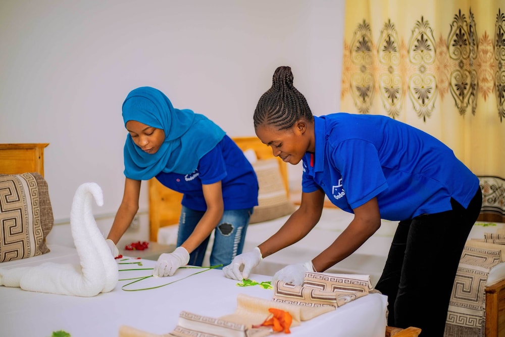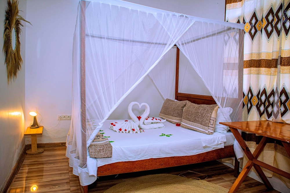 Når du har Ondo House i Nungwi som overnattingssted, bor du i nærheten av et kjøpesenter, kun 15 minutter å kjøre fra Nungwi strand og Kendwa strand. Dette bed & breakfast-hotellet ligger 19,4 mi (31,2 km) unna Kiwengwa strand og 0,3 mi (0,5 km) unna Nungwi Natural Aquarium. Føl deg som hjemme i et av de 7 aircondition-avkjølte gjesterommene. Du kan holde deg oppdatert med wi-fi (inkludert) på rommet. Badene har badekar eller dusj, regndusjhode og tøfler. Rommene har takvifte og rengjøring tilbys daglig. Avstandene som vises er rundet av til nærmeste 0,1 kilometer.