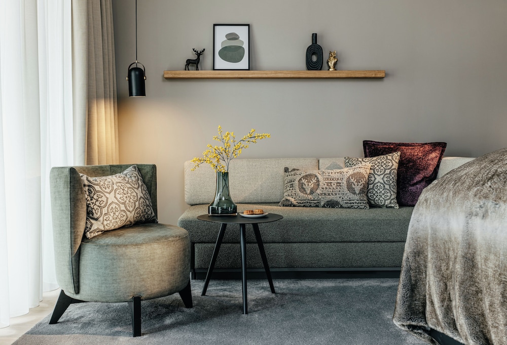 I Kitzbühel ligger Grand Tirolia Kitzbühel - Member of Hommage Luxury Hotels Collection plassert på fjellet og kun 5 minutter å kjøre fra både Hahnenkamm skiområde og Kitzbühel tennisstadion. Dette hotellet med familievennlig profil ligger 2,7 mi (4,3 km) unna Aquarena Kitzbühel og 2,8 mi (4,5 km) unna Hahnenkamm taubane. Føl deg som hjemme i et av de 145 gjesterommene, som har minibar og Flatskjerm-TV. Du kan holde deg oppdatert med wi-fi (inkludert) på rommet, og underholdningen er sikret med parabol-TV. Badene har badekar eller dusj, regndusjhode og hårføner. Rommet har telefon, samt safe med plass til bærbar PC og flaskevann (inkludert). Avstandene som vises er rundet av til nærmeste 0,1 kilometer.