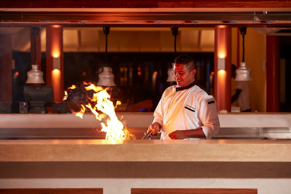 Når du har Sun Siyam Olhuveli i Olhuveli som overnattingssted, bor du på stranden og rett ved både Rihiveli-stranden og Olhuveli-stranden. Dette resort-hotellet ved stranden ligger 0,1 mi (0,1 km) unna Rannalhi-stranden og 0,1 mi (0,2 km) unna Gulhi strand. Føl deg som hjemme i et av de 164 aircondition-avkjølte gjesterommene, som også har kjøleskap og minibar. Rommene har egen møblert balkong eller terrasse. Underholdningen er sikret med en LCD-TV med kabel-TV, og wi-fi (inkludert) sørger for at du kan holde deg oppdatert. Badene inkluderer toalettartikler (inkludert) og bideer. Avstandene som vises er rundet av til nærmeste 0,1 kilometer.