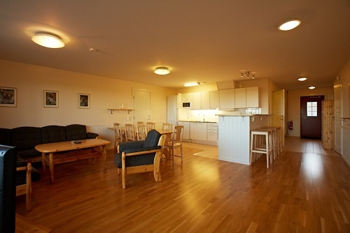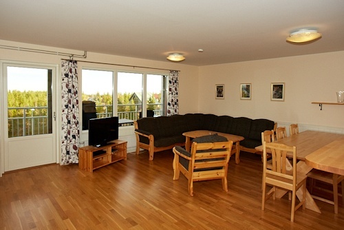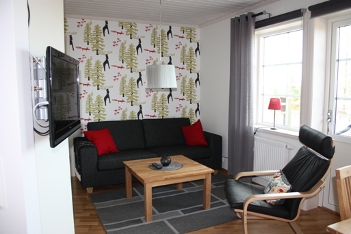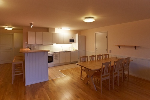 For deg som ønsker å bo i egen leilighet har vi to forskjellige typer å velge mellom. Denne trivelige leiligheten ligger i øverste etasje med balkong, den er på 48 kvm og har 5 sengeplasser. Her finnes det kjøkkenkrok med alt av utstyr dere måtte trenge i ferien, samt stor stue med spiseplass, TV med DVD og sittemøbler. To soverom, ett med dobbeltseng og overkøye og ett med køyeseng. Et bad med dusj. Tørkeskap og motorvarmeruttak, og i kjelleren finnes det vaskerom, tilgang til skibod, støveloppbevaring og smørebenk. Her er det også barnestoler som kan lånes.