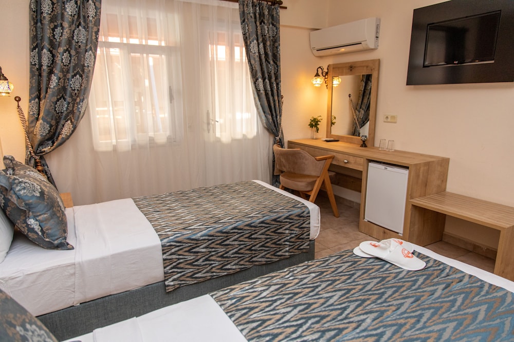Gjester har tilgang til blant annet et døgnåpent forretningssenter, hurtiginnsjekking og hurtigutsjekking. Planlegger du en event i Ortaca? Som en av dette hotellet sine gjester tilbys du møte- og konferanserom på opp til 9 kvadratmeter, blant annet konferanserom og møterom. Gjestene tilbys flyplasstransport døgnet rundt, mot et tillegg, og ubetjent parkering (inkludert) er tilgjengelig i nærheten. Nyt rekreasjonsfasiliteter som et sesongbasert utendørsbasseng og sykkelutleie. Dette hotellet har dessuten wi-fi (inkludert), et spillrom og peis i lobbyen. Ta deg et måltid i restauranten eller noe lett å bite i på kafeen. På dette hotellet tilbys det også romservice (døgnet rundt). Slapp av om kvelden med noe å drikke i baren/loungen eller bassengbaren. Frokostbuffé er inkludert og serveres daglig fra kl. 08.00 til kl. 10.00.- Avgift for flyplasstransport per voksen: 25 TRY (tur-retur)