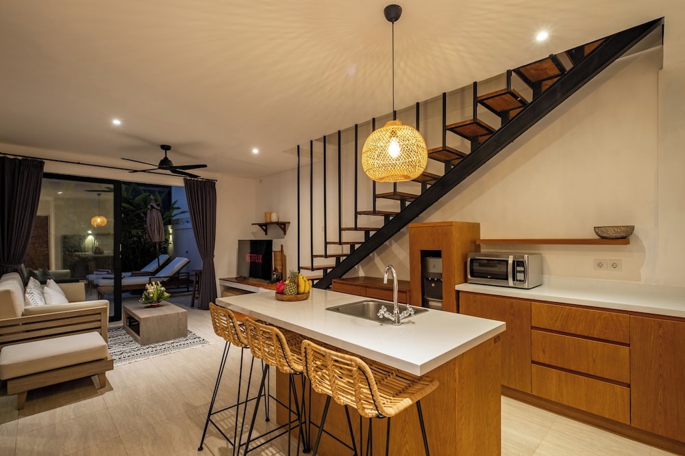 Velger du denne villaen i Canggu (Padonan) som overnattingssted, vil du bare ha 15 minutter å kjøre til Eat-gaten og Seminyak plass. Denne villaen ligger 2,8 mi (4,6 km) unna Seminyak-stranden og 6 mi (9,6 km) unna Legian-stranden. Føl deg som hjemme i denne villaen, som er utstyrt med airconditioning, privat basseng og smart-TV. Et kjøkken er utstyrt med kjøleskap/fryseboks i full størrelse, komfyrtopp og mikrobølgeovn. Wi-fi (inkludert) gjør at du kan holde deg oppdatert, og underholdningen er sikret med digital-TV. Bekvemmelighetene omfatter safe og skrivebord, og rengjøring tilbys daglig. Avstandene som vises er rundet av til nærmeste 0,1 kilometer.