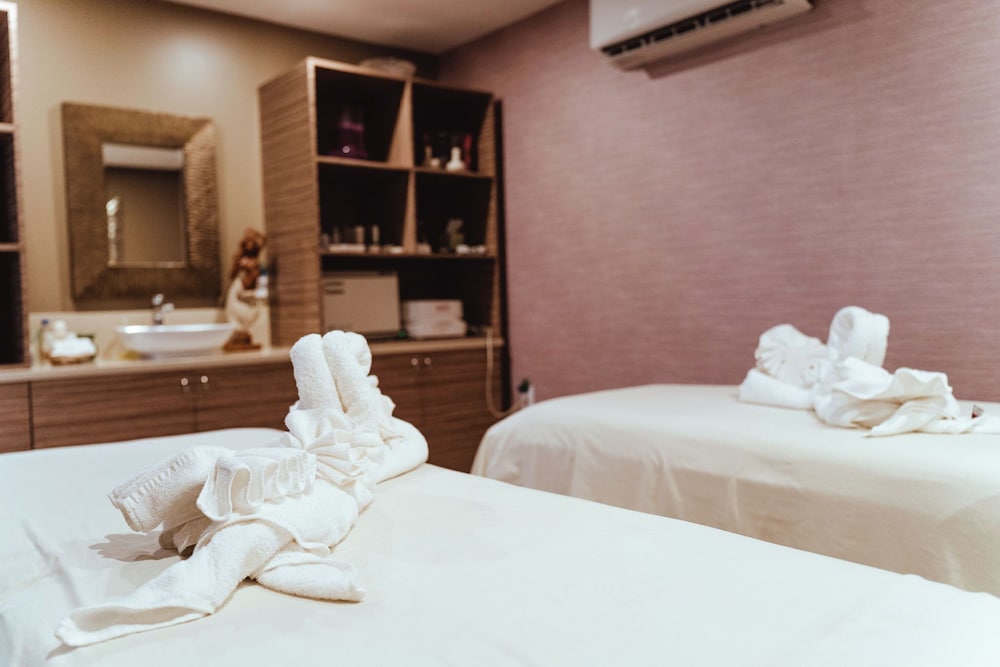 - Massasjetjenester og spabehandlinger må forhåndsbestilles. Bestilling kan foretas ved å kontakte dette hotellet før ankomst ved hjelp av kontaktopplysningene i bestillingsbekreftelsen.
