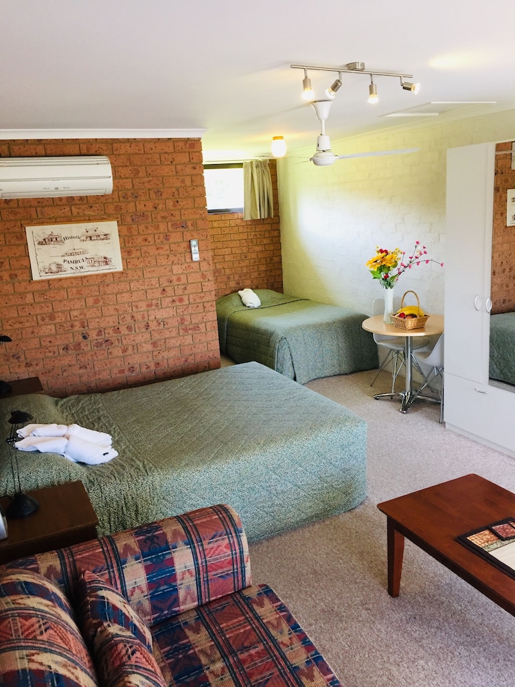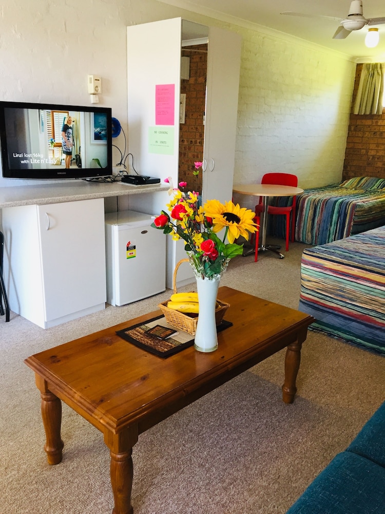 Velger du Colonial Motor Inn Pambula som overnattingssted i Pambula, vil du ha 3 minutter å gå til Panboola Wetlands and Heritage Project og 7 minutter til Panboola Waterbird Sanctuary. Dette motellet ligger 0,7 mi (1,2 km) unna Pambula Hospital og 1 mi (1,6 km) unna Ben Boyd nasjonalpark. Føl deg som hjemme i et av de 14 aircondition-avkjølte gjesterommene, som også har kjøleskap og mikrobølgeovn. Underholdningen er sikret med en 32-tommers LCD-TV med kabel-TV, og wi-fi (inkludert) gjør at du kan holde deg oppdatert. Badene har dusj, regndusjhode og toalettartikler (inkludert). Rommene har skrivebord og vannkoker, og rengjøring tilbys daglig. Avstandene som vises er rundet av til nærmeste 0,1 kilometer.