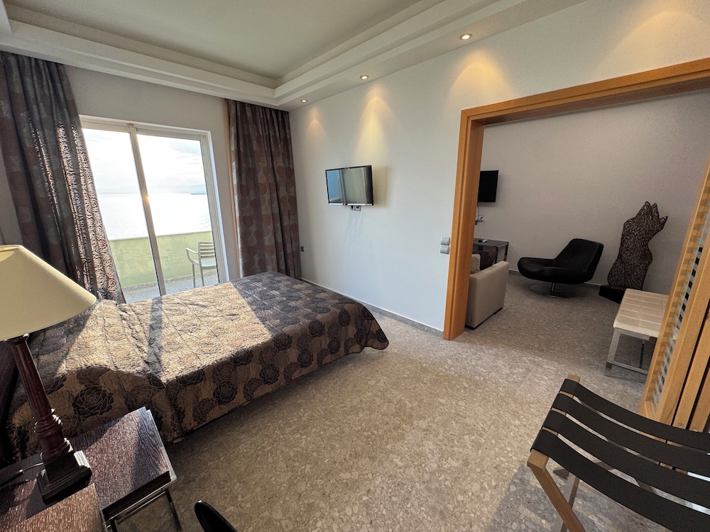 Velger du Messinian Bay Hotel som overnattingssted i Kalamata, vil du ha 1 minutter å gå til Det joniske hav og 6 minutter til Almyros strand. Dette hotellet ved stranden ligger 0,9 mi (1,4 km) unna Mikri Mantinia-stranden og 2,2 mi (3,5 km) unna Filoxenia strand. Føl deg som hjemme i et av de 76 aircondition-avkjølte gjesterommene som også har kjøleskap og LCD-TV. Rommene har egen balkong. Du kan holde deg oppdatert med wi-fi (inkludert) på rommet. Badene har dusj, toalettartikler (inkludert), og hårføner. Avstandene som vises er rundet av til nærmeste 0,1 kilometer.