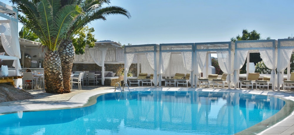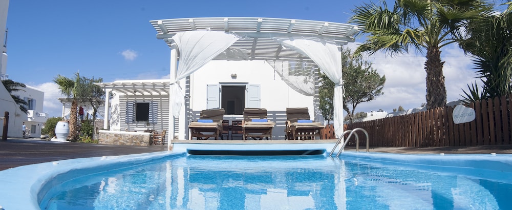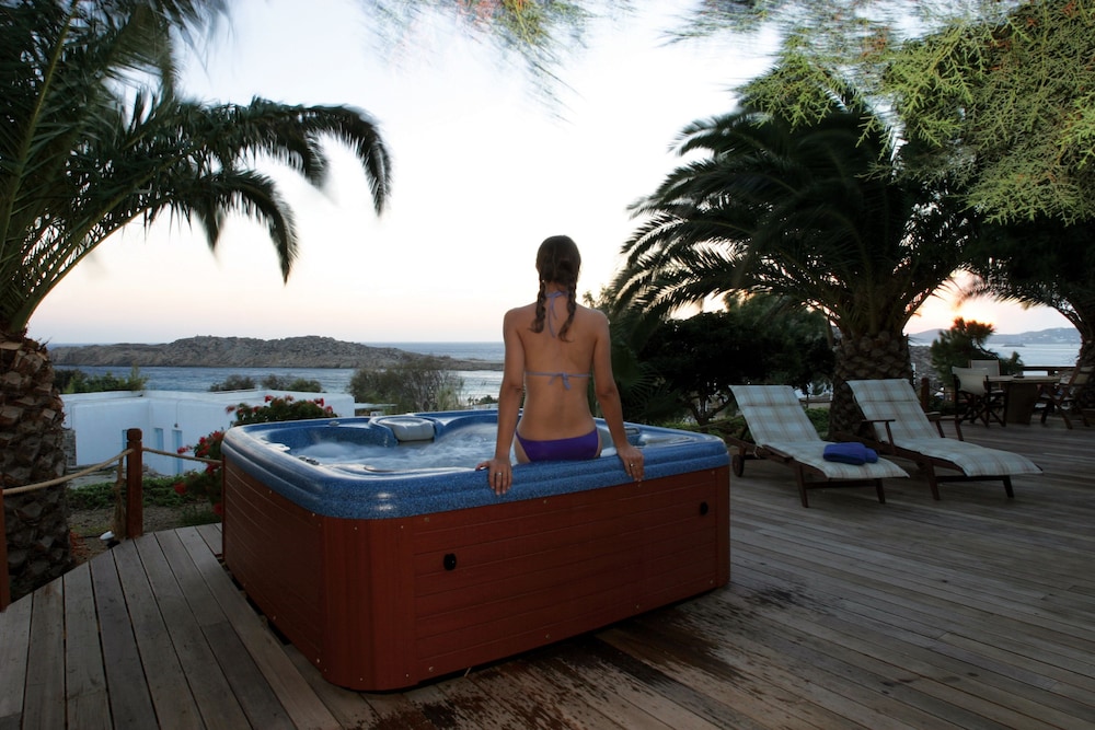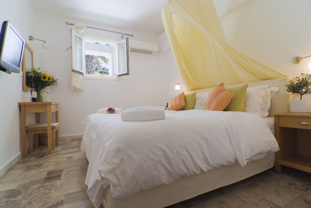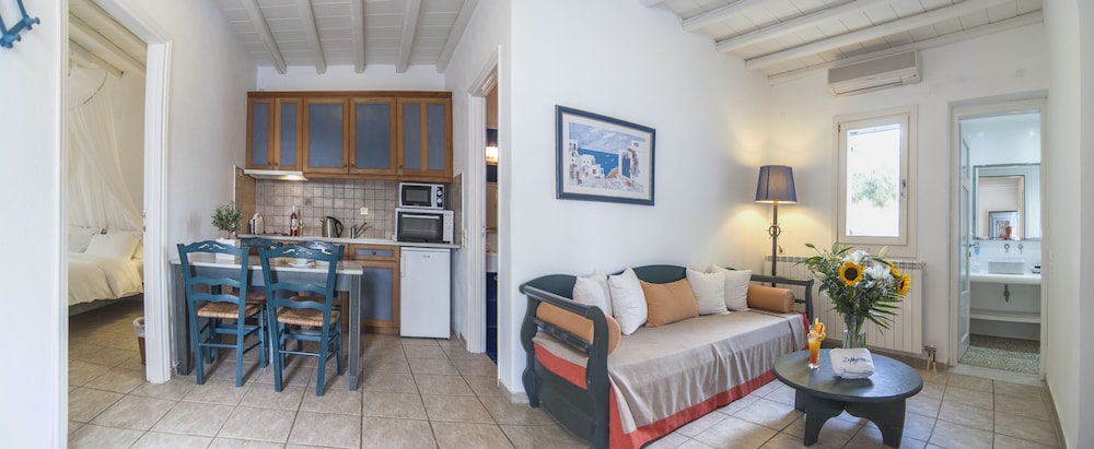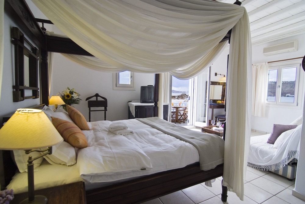Når du har Zephyros Hotel i Mykonos som overnattingssted bor du i nærheten av strand, mindre enn en 15 minutters spasertur unna både Platis Gialos-stranden og Paradisstranden. Dette hotellet ligger 6,8 mi (10,9 km) unna Mykonos nye havn og 3,4 mi (5,4 km) unna Vindmøllene i Mykonos. Føl deg som hjemme i et av de 35 aircondition-avkjølte gjesterommene som også har kjøleskap og LCD-TV. Du kan holde deg oppdatert med wi-fi (inkludert) på rommet. Badene inkluderer toalettartikler (inkludert) og hårføner. Rommene har minibar og rengjøring tilbys daglig. Avstandene som vises er rundet av til nærmeste 0,1 kilometer.