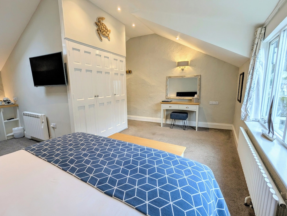 Velger du The Claremont Hotel - Adult Only når du skal overnatte i Looe, vil du være 0,3 mi (0,5 km) unna Polperro Harbour (havneområde) og 5,3 mi (8,5 km) unna Looe Beach (strand). Dette hotellet ligger 7,8 mi (12,6 km) unna Fowey River galleri og 8,1 mi (13,1 km) unna Fowey Estuary. Føl deg som hjemme i et av de 12 gjesterommene. Du kan holde deg oppdatert med wi-fi (inkludert) på rommet. Rommene har privat bad med toalettartikler (inkludert) og hårføner. Rommene har skrivebord og kaffetrakter/tekoker, og rengjøring tilbys daglig. Avstandene som vises er rundet av til nærmeste 0,1 kilometer.