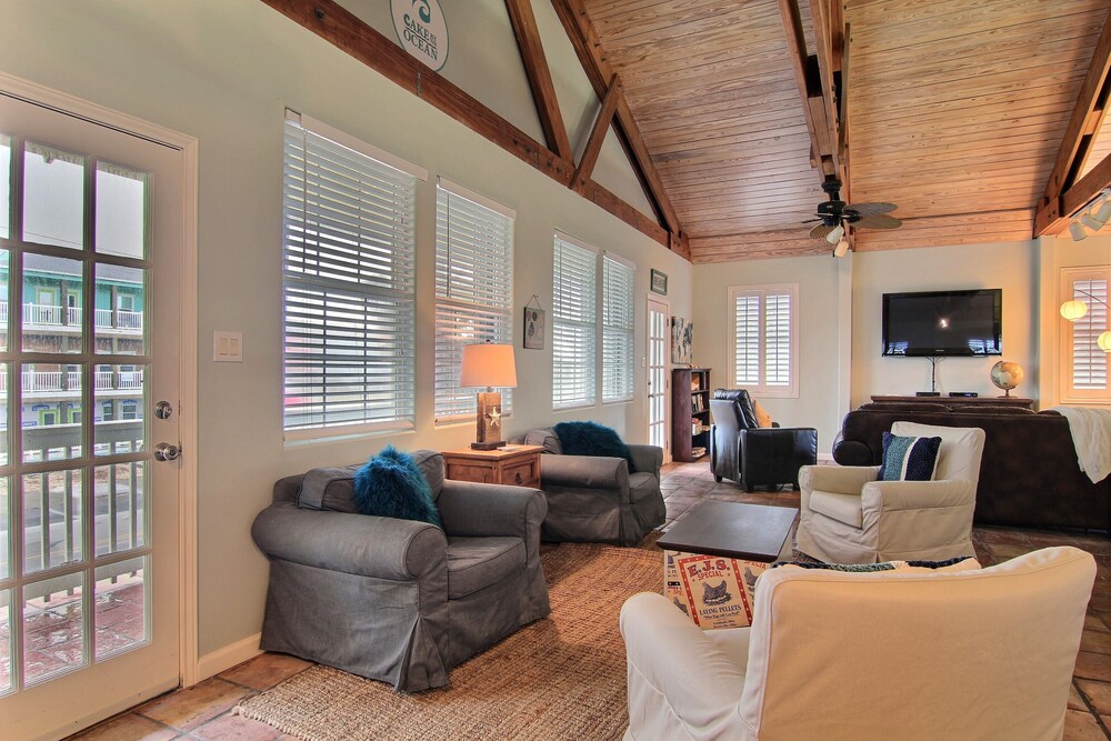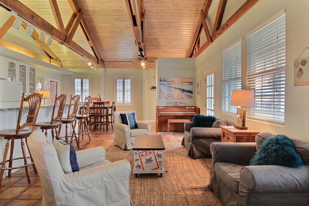 Velger du denne ferieboligen i Port Aransas som overnattingssted, bor du på stranden, kun en 5 minutters kjøretur unna både Port Aransas strand og Holiday Beach. Denne ferieboligen ved stranden ligger 1 mi (1,6 km) unna Nature Preserves og 1 mi (1,6 km) unna Port Aransas Museum. Føl deg som hjemme i denne ferieboligen, som er individuelt dekorert og utstyrt med et kjøkken med kjøleskap og stekeovn. Det finnes en privat møblert balkong eller terrasse. Du kan benytte deg av en 43-tommers flatskjerm-TV med kabel-TV. Bekvemmelighetene omfatter separat sitteområde og mikrobølgeovn. Avstandene som vises er rundet av til nærmeste 0,1 kilometer.
