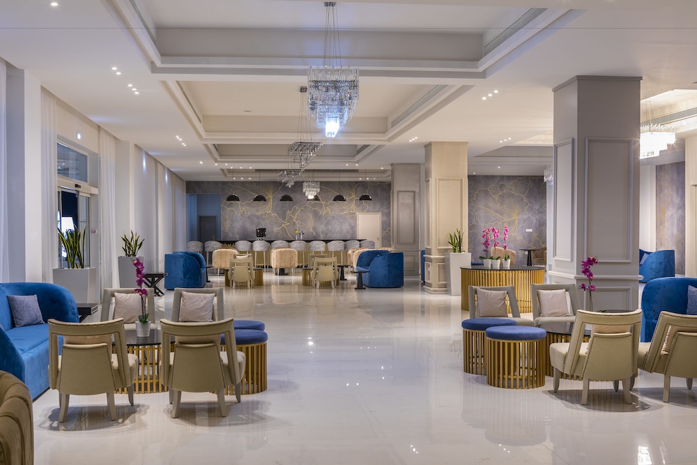 Velger du Constantinos The Great Beach Hotel i Paralimni (Protaras bysentrum) som overnattingssted, vil du bare ha 15 minutter å kjøre til Fikentrebukten og Konnos-bukten strand. Dette hotellet ved stranden ligger 9,8 mi (15,7 km) unna Nissi-stranden og 10,1 mi (16,3 km) unna Makronissos Beach. Føl deg som hjemme i et av de 153 aircondition-avkjølte gjesterommene som også har kjøleskap og Flatskjerm-TV. Rommene har egen møblert balkong. Underholdningen er sikret med parabol-TV. Badene har dusj, toalettartikler (inkludert), og hårføner. Avstandene som vises er rundet av til nærmeste 0,1 kilometer.