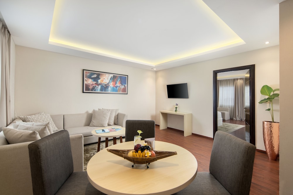 Gjester har tilgang til blant annet et forretningssenter, renseri-/vaskeritjenester og en døgnåpen resepsjon. Planlegger du en event i Denpasar? Som en av dette hotellet sine gjester tilbys du møte- og konferanserom på opp til 233 kvadratmeter, blant annet konferansesenter og 5 møterom. Gjestene tilbys ubetjent parkering (inkludert) på stedet. Dra nytte av blant annet et utendørsbasseng eller nyt utsikten fra en terrasse og en hage. Dette hotellet har dessuten wi-fi (inkludert), concierge-tjenester og bankettsal. Kom og spis lunsj eller middag i dette hotellets restaurant, eller bli på rommet og benytt deg av romservice (på fastsatte tidspunkter). Stedet har en bar/lounge hvor du kan slukke tørsten med din yndlingsdrink. Frokostbuffé tilbys daglig fra kl. 06.00 til kl. 10.00 mot et tillegg. I henhold til lokale regelverk, må alle besøkende oppholde seg innendørs på overnattingsstedet under Stillhetens dag/Nyepi i et helt døgn (fra kl. 06.00). Stillhetens dag er en bevegelig helligdag som kommer i mars eller april. Det vil ikke være mulig å sjekke inn eller ut denne dagen. Ngurah Rai lufthavn (Bali internasjonale flyplass) er også stengt denne dagen.Du må betale følgende avgifter på overnattingsstedet (skatter kan være inkludert):