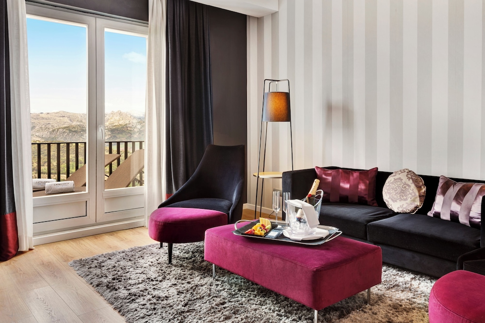 Velger du Catalonia Reina Victoria som overnattingssted i Ronda, er du bare 10 minutters gange unna både Puente Nuevo-broen og Nuestra Señora de la Ronda kirke. Dette hotellet med spa ligger 0,3 mi (0,4 km) unna Alameda Del Tajo og 0,3 mi (0,5 km) unna Ronda tyrefektermuseum. Føl deg som hjemme i et av de 95 aircondition-avkjølte gjesterommene som også har minibar og Flatskjerm-TV. Du kan holde deg oppdatert med wi-fi (inkludert) på rommet, og underholdningen er sikret med parabol-TV. Rommene har privat bad med badekar eller dusj, toalettartikler (inkludert) og hårføner. Rommet har telefon, samt safe og skrivebord. Avstandene som vises er rundet av til nærmeste 0,1 kilometer.