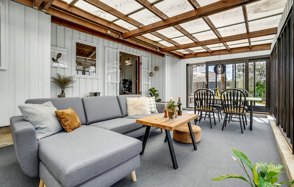 I vakre naturomgivelser venter en helt spesiell ferie på deg i dette feriehuset. Interiøret er veldig stilig og pent innredet med mange vakre tredetaljer. Huset tilbyr en romslig stue med åpent kjøkken, hvor du kan tilbringe mange, sosiale timer i en avslappet atmosfære. Et høydepunkt er den atmosfæriske vinterhagen, hvor du kan sitte komfortabelt i all slags vær og nyte utsikten over fjorden.
