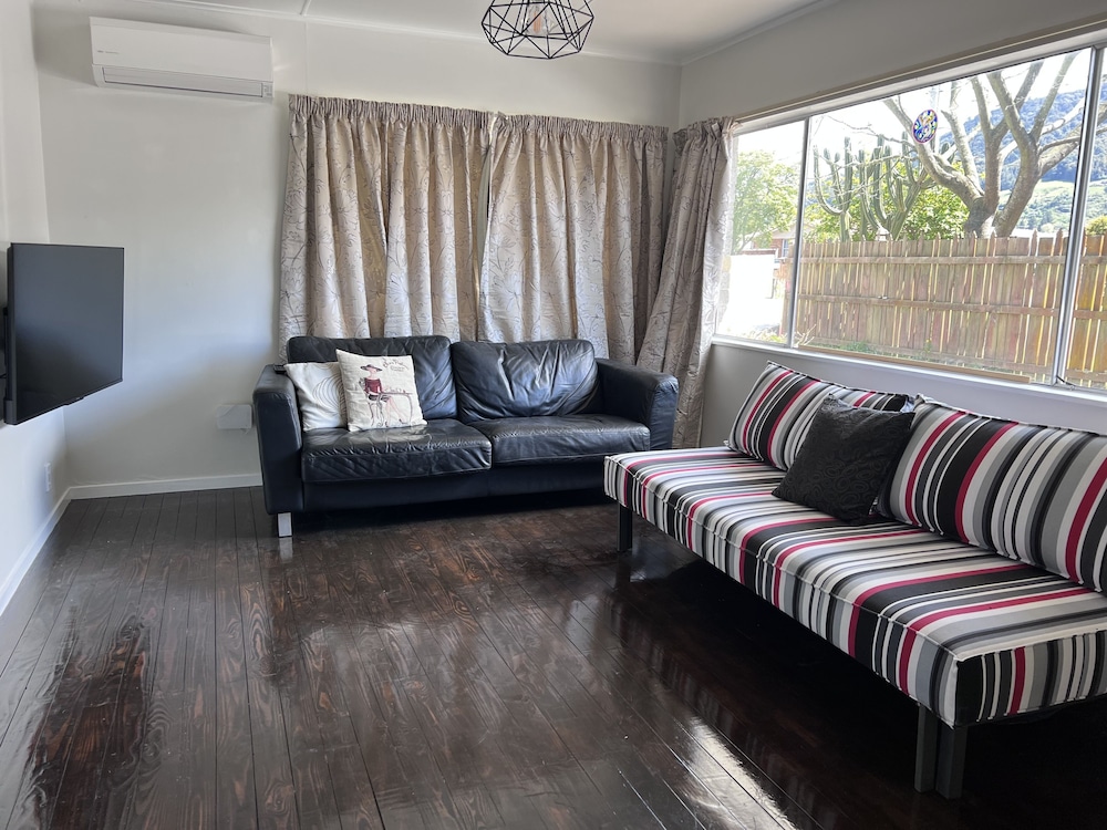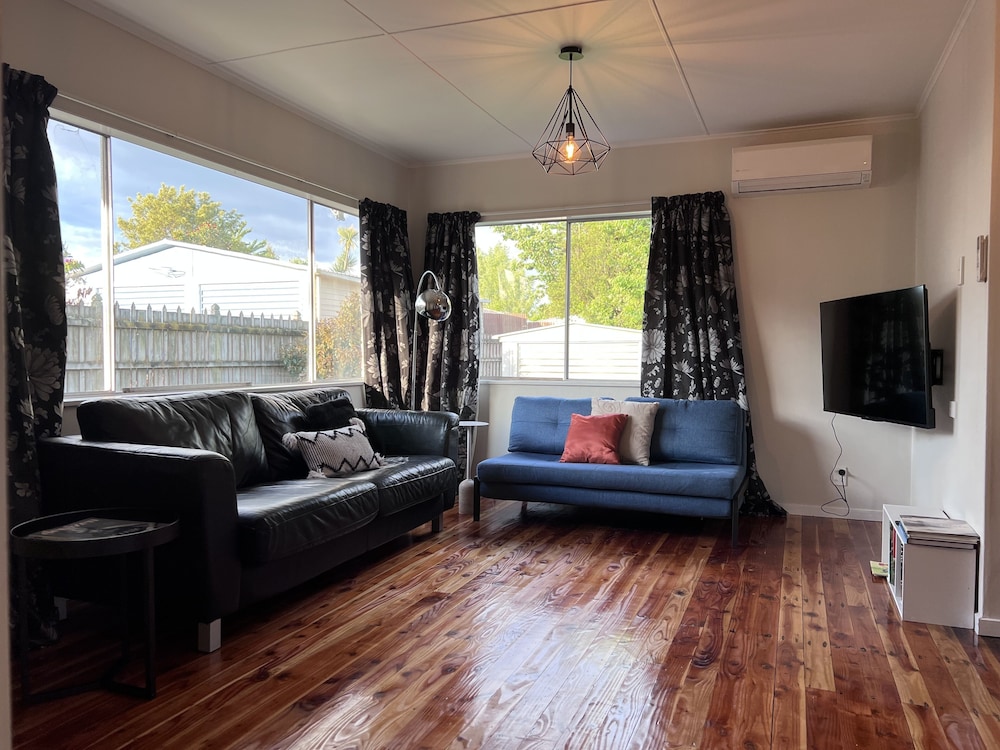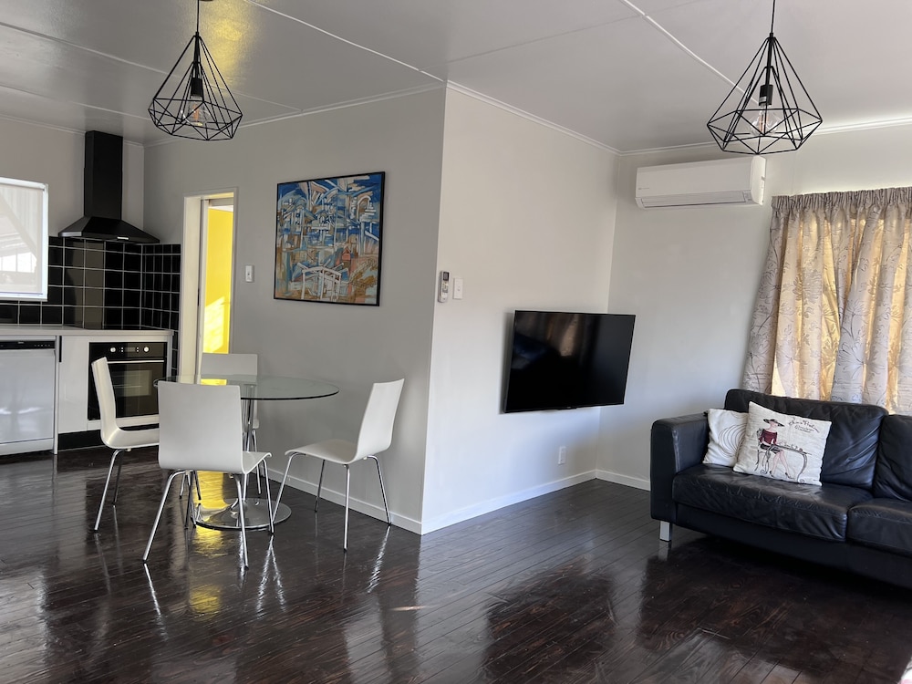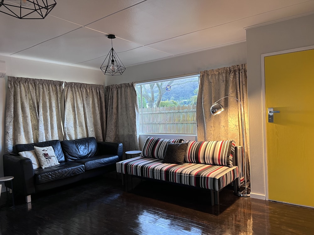 Dersom du velger denne ferieboligen i Rotorua (Mangakakahi) som overnattingssted vil du bare være en 4 minutters kjøretur fra Skyline Rotorua og 6 minutter fra Polynesian Spa. Denne ferieboligen ligger 0,9 mi (1,4 km) unna DriftKartz og 1,5 mi (2,4 km) unna Tribal Lights Cultural Theatre. Føl deg som hjemme i denne ferieboligen, som er individuelt dekorert og utstyrt med et kjøkken med kjøleskap/fryseboks i full størrelse og stekeovn. I denne ferieboligen har en seng med overmadrass. Underholdningen er sikret med en 50-tommers smart-TV med parabol-TV, og wi-fi (inkludert) gjør at du kan holde deg oppdatert. Bekvemmelighetene omfatter separat sitteområde og mikrobølgeovn. Avstandene som vises er rundet av til nærmeste 0,1 kilometer.