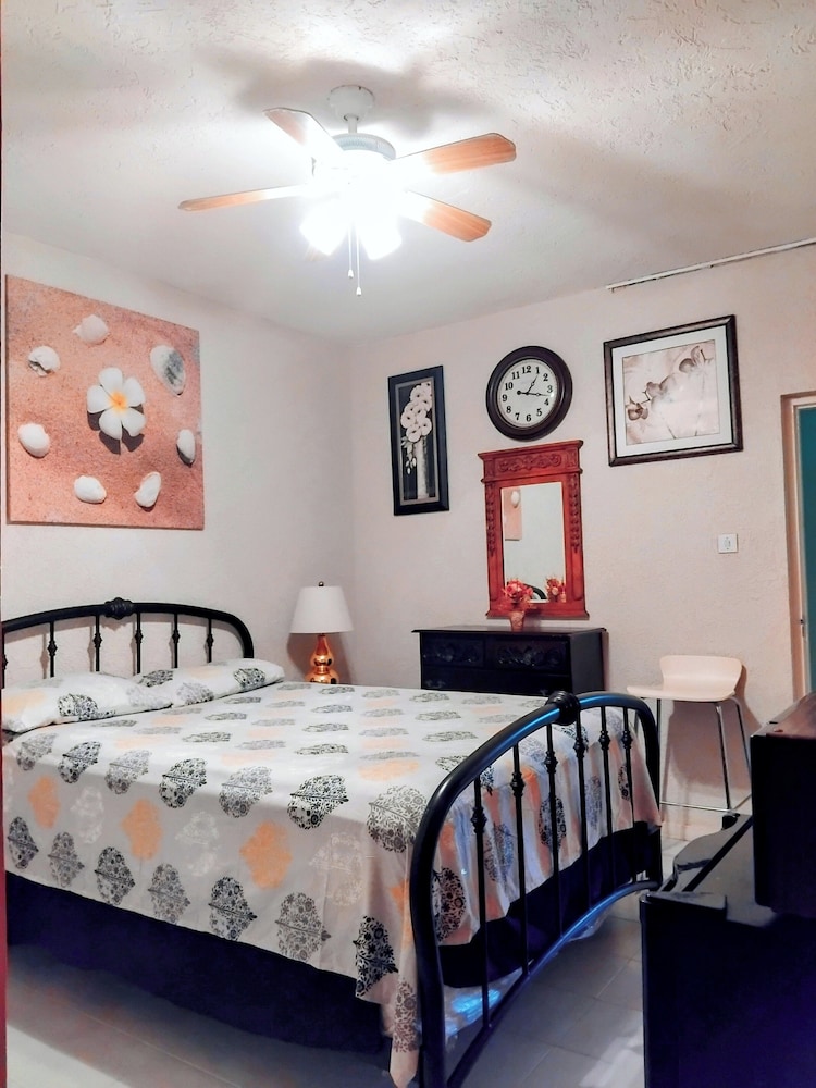 Rush Bond Villa i Montego Bay (Ironshore) vil du ha Whitter Village like rundt hjørnet samtidig som du har kun 5 minutters gange til Blue Diamond kjøpesenter. Dette gjestehuset ligger 2,8 mi (4,5 km) unna Tropical Bliss og 4,2 mi (6,7 km) unna Doctor's Cave Beach. Føl deg som hjemme i et av de 3 aircondition-avkjølte gjesterommene som også har smart-TV. Du kan holde deg oppdatert med wi-fi (inkludert) på rommet, og underholdningen er sikret med digital-TV. Badene har kombinert dusj/badekar. Avstandene som vises er rundet av til nærmeste 0,1 kilometer.