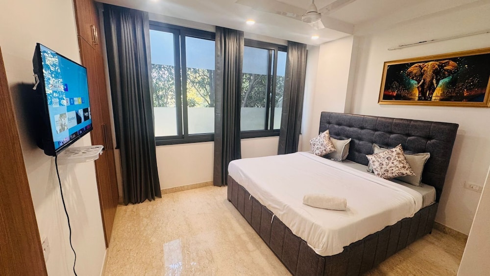 Velger du Fortune Home Service Apartment 3Bhk E-69 i New Delhi (Hauz Khas) som overnattingssted, vil du bare ha 15 minutter å kjøre til Lajpat Nagar bytorg og India-porten. Denne leiligheten ligger 11,3 mi (18,2 km) unna Chandni Chowk og 8,4 mi (13,6 km) unna Pragati Maidan. Føl deg som hjemme i et av de 3 aircondition-avkjølte gjesterommene. Du kan holde deg oppdatert med wi-fi (inkludert) på rommet. Badene har dusj og toalettartikler (inkludert). Avstandene som vises er rundet av til nærmeste 0,1 kilometer.