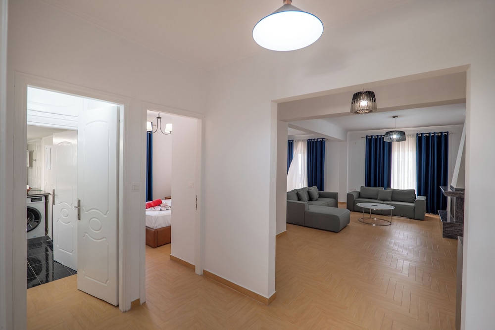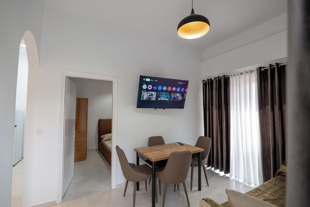 Velger du Hoteleks i Sarandë (Kodrra) som overnattingssted, vil du være mindre enn en 10 minutters spasertur unna både Sarande fergeterminal og Sarandë havn. Denne leiligheten ligger 9,3 mi (15 km) unna Ksamiløyene og 6,8 mi (11 km) unna Speilstranden. Overnatt i et av de 7 gjesterommene, som har LED-TV. Du kan holde deg oppdatert med wi-fi (inkludert) på rommet. Rommene har kaffetrakter/tekoker og vaskemaskin. Avstandene som vises er rundet av til nærmeste 0,1 kilometer.