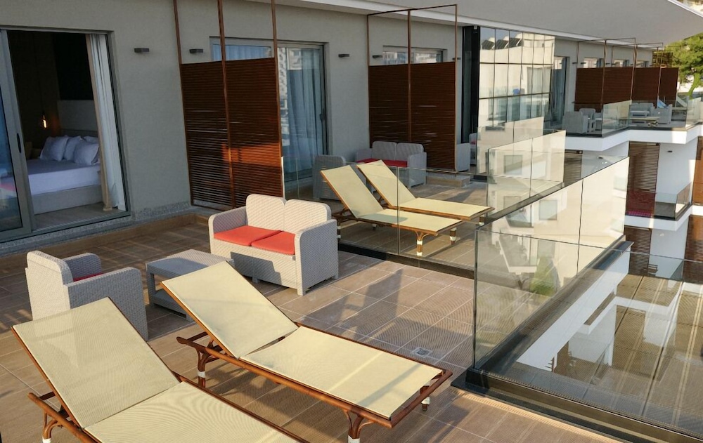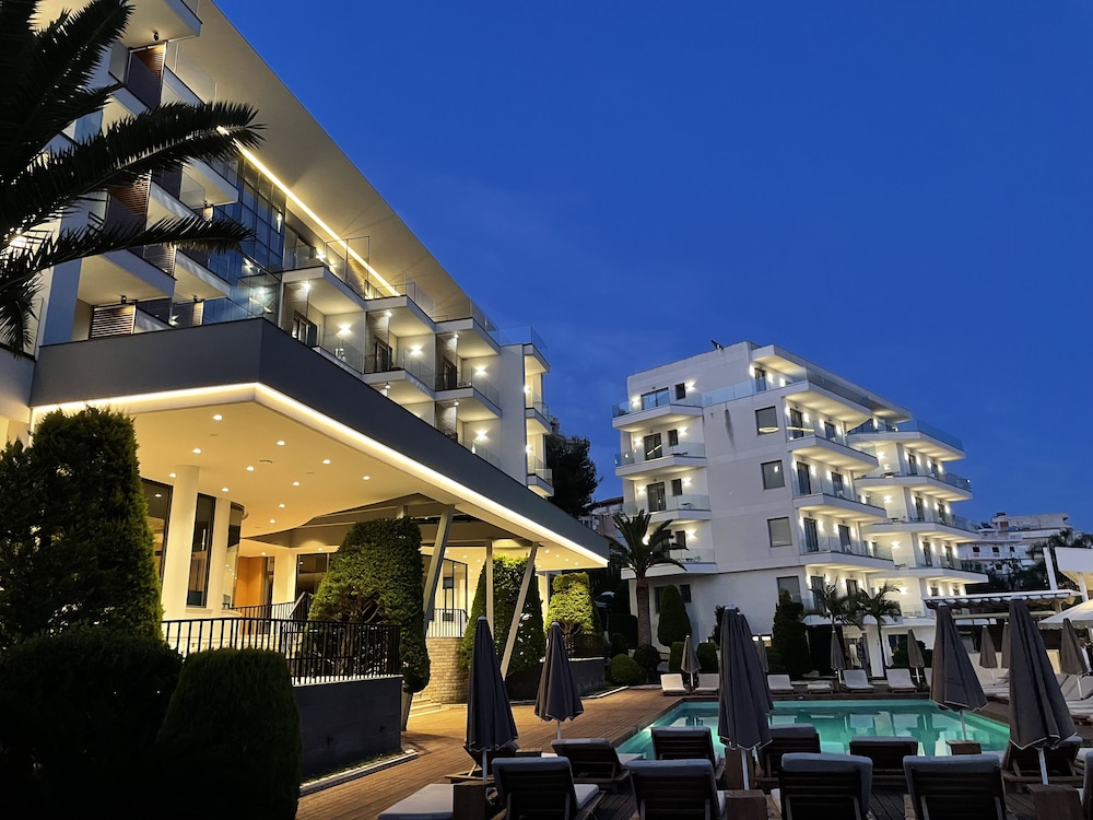 Med Andon Lapa Suites i Sarandë (Kodrra) som ditt overnattingssted, vil du være 10 minutter unna Sarandë havn og Sarande fergeterminal til fots. Dette hotellet ved stranden ligger 9,7 mi (15,5 km) unna Ksamiløyene og 7,2 mi (11,6 km) unna Speilstranden. Føl deg som hjemme i et av de 84 aircondition-avkjølte gjesterommene som også har minibar og LCD-TV. Sengen har overmadrass, dundyner og sengetøy i egyptisk bomull. Du kan holde deg oppdatert med wi-fi (inkludert) på rommet, og underholdningen er sikret med parabol-TV. Badene har dusj, hårføner, og tøfler. Avstandene som vises er rundet av til nærmeste 0,1 kilometer.