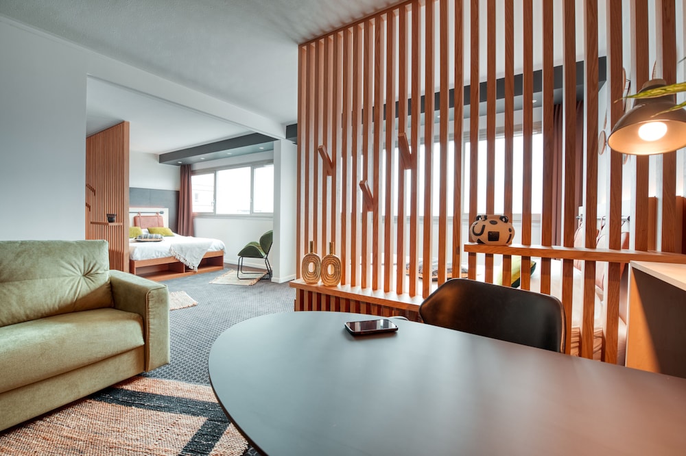 Cowool Grenoble i Grenoble (Secteur 6) vil du ha Palais des Congres Alpexpo like rundt hjørnet samtidig som du har kun 3 minutters gange til Polesud skøytebane.  Dette hotellet ligger 3,2 mi (5,1 km) unna Grenoble-Bastille gondolbane og 3,7 mi (5,9 km) unna Grenoble museum. Føl deg som hjemme i et av de 94 gjesterommene, som er individuelt dekorert, og som har et kjøkken med kjøleskap og komfyrtopp. Sengen har Select Comfort-madrass og sengetøy av topp kvalitet. Du kan holde deg oppdatert med wi-fi (inkludert) på rommet. Rommene har skrivebord og separat sitteområde, og rengjøring tilbys etter avtale. Avstandene som vises er rundet av til nærmeste 0,1 kilometer.
