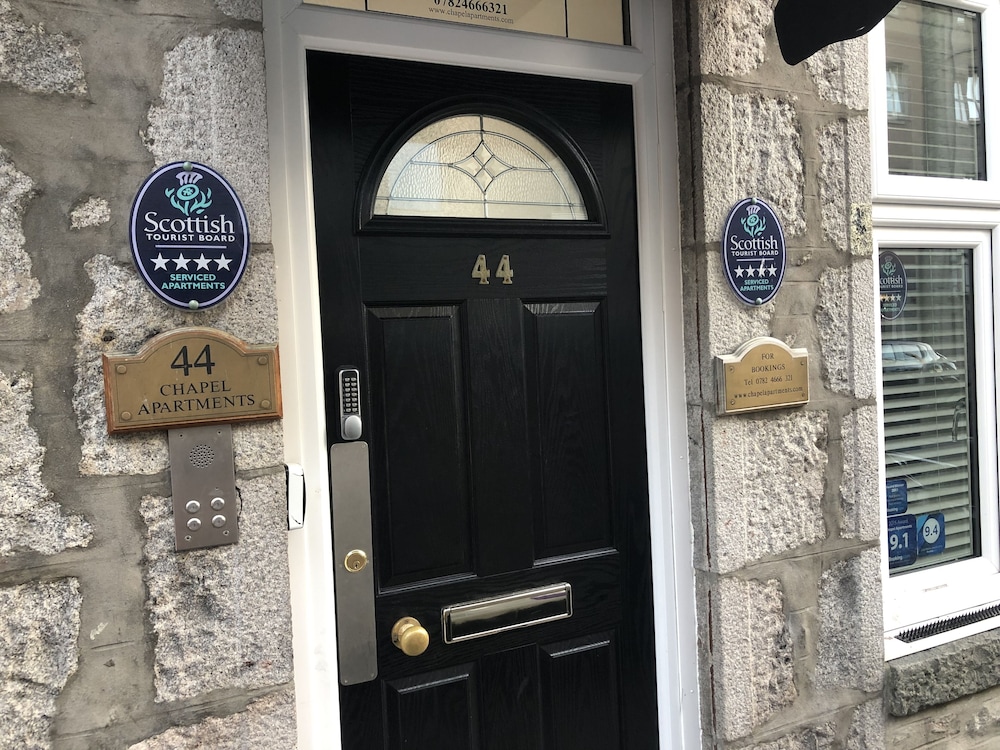 Chapel Apartments ligger sentralt plassert i Aberdeen. Dersom du bor her, vil du bare ha en en 4 minutters spasertur til St. Marys romersk-katolske katedral og 5 minutter til Aberdeen Music Hall (konsertsal). Dette hotellet ligger 0,4 mi (0,6 km) unna Prince Albert the Prince Consort og 0,4 mi (0,6 km) unna His Majestys teater. Føl deg som hjemme i et av de 5 gjesterommene, som har et kjøkken med kjøleskap og ovn. Underholdningen er sikret med en flatskjerm-TV og en spillkonsoll, mens wi-fi (inkludert) sørger for at du kan holde deg oppdatert. Rommene har separat sitteområde og mikrobølgeovn, og rengjøring tilbys ukentlig. Avstandene som vises er rundet av til nærmeste 0,1 kilometer.