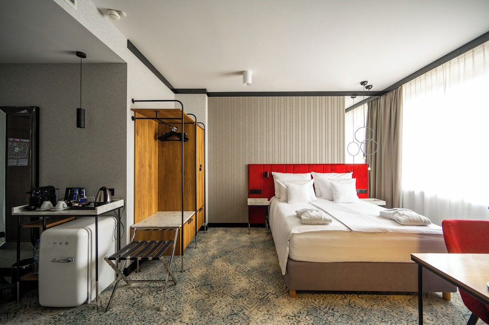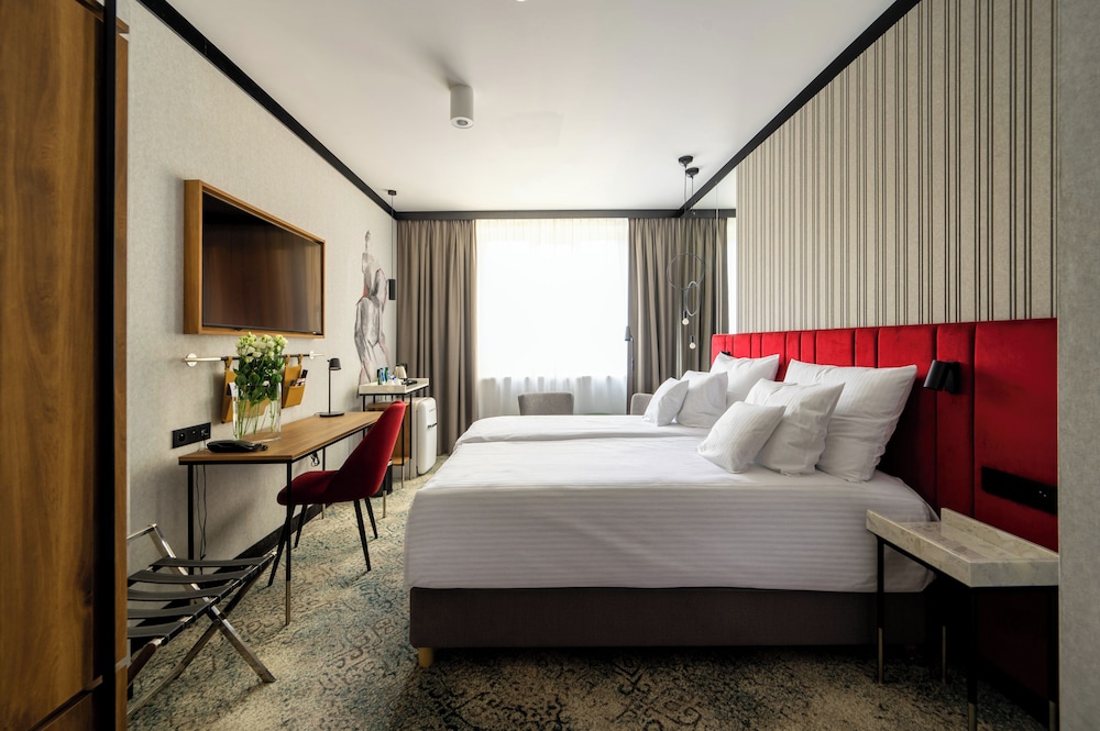 Dersom du velger Hotel Kossak vil du bo sentralt i Kraków, en 7-minutters spasertur fra Kongeveien og 10 minutter fra Wawel slott. Dette hotellet med spa ligger 0,6 mi (1 km) unna Markedsplassen og 1,2 mi (1,9 km) unna ICE Krakow kongressenter. Føl deg som hjemme i et av de 60 gjesterommene, som har kjøleskap og LCD-TV. Du kan holde deg oppdatert med inkludert kablet og trådløst internett, og underholdningen er sikret med parabol-TV. Badene har kombinert dusj/badekar, toalettartikler (inkludert), og hårføner. Rommet har telefon, samt safe med plass til bærbar PC og skrivebord. Avstandene som vises er rundet av til nærmeste 0,1 kilometer.