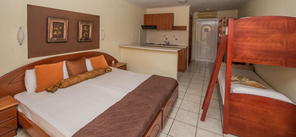 Velger du Damia Hotel i Korfu som overnattingssted, bor du nær stranden, kun en 5 minutters kjøretur unna både Sidari strand og Det joniske hav. Dette leilighetshotellet ligger 16,3 mi (26,3 km) unna Paleokastritsa strand og 17,5 mi (28,1 km) unna Ipsos-stranden. Føl deg som hjemme på et av de 31 gjesterommene, som har air conditioning, og som har et tekjøkken med kjøleskap og komfyrtopp. Rommene har egen balkong. Du kan holde deg oppdatert med wi-fi (inkludert) på rommet. Rommene har skrivebord og kaffetrakter/tekoker, og rengjøring tilbys daglig. Avstandene som vises er rundet av til nærmeste 0,1 kilometer.